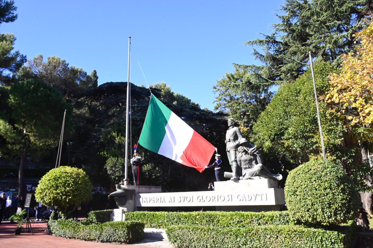 Imperia ha celebrato questa mattina in Piazza della Vittoria la Giornata dell’Unità Nazionale e delle Forze Armate. Presente il Prefetto Antonio Giaccari, il sindaco Claudio Scajola e i reparti dell’Esercito, della Capitaneria di Porto, dell’Arma dei Carabinieri, della Guardia di Finanza, della Polizia, della Penitenziaria e rappresentanti dei Vigili del Fuoco, della Polizia Locale, Croce Rossa e Volontari della Protezione Civile e di altre associazioni
