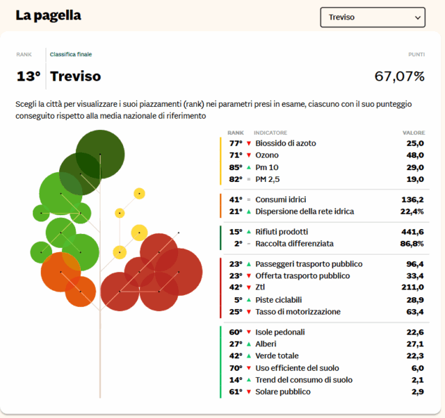 Ecosistema Urbano 2025: Treviso scende, ma resta tra i top