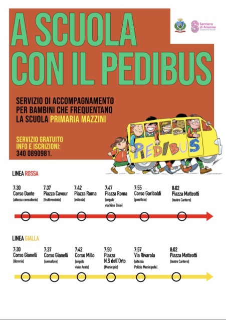 Riparte “A scuola con il Pedibus”, il servizio di accompagnamento casa-scuola a piedi dedicato agli alunni della scuola primaria Mazzini di Chiavari.