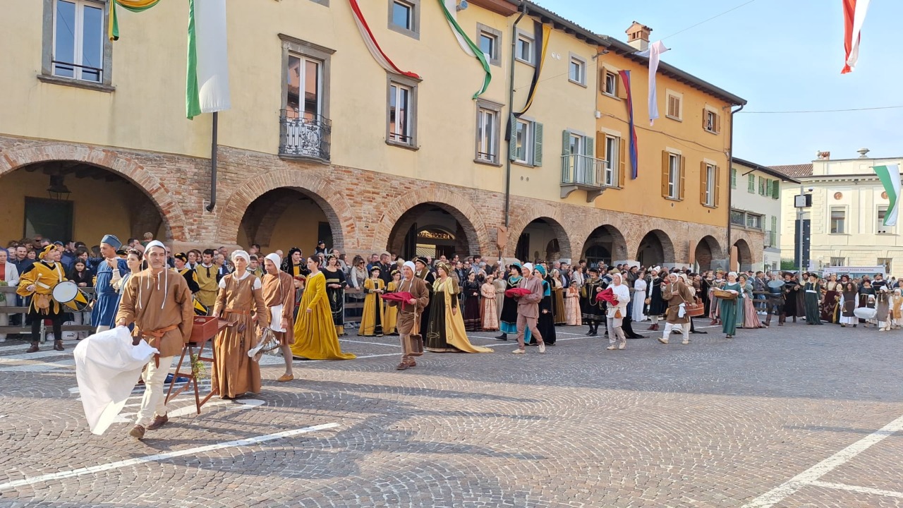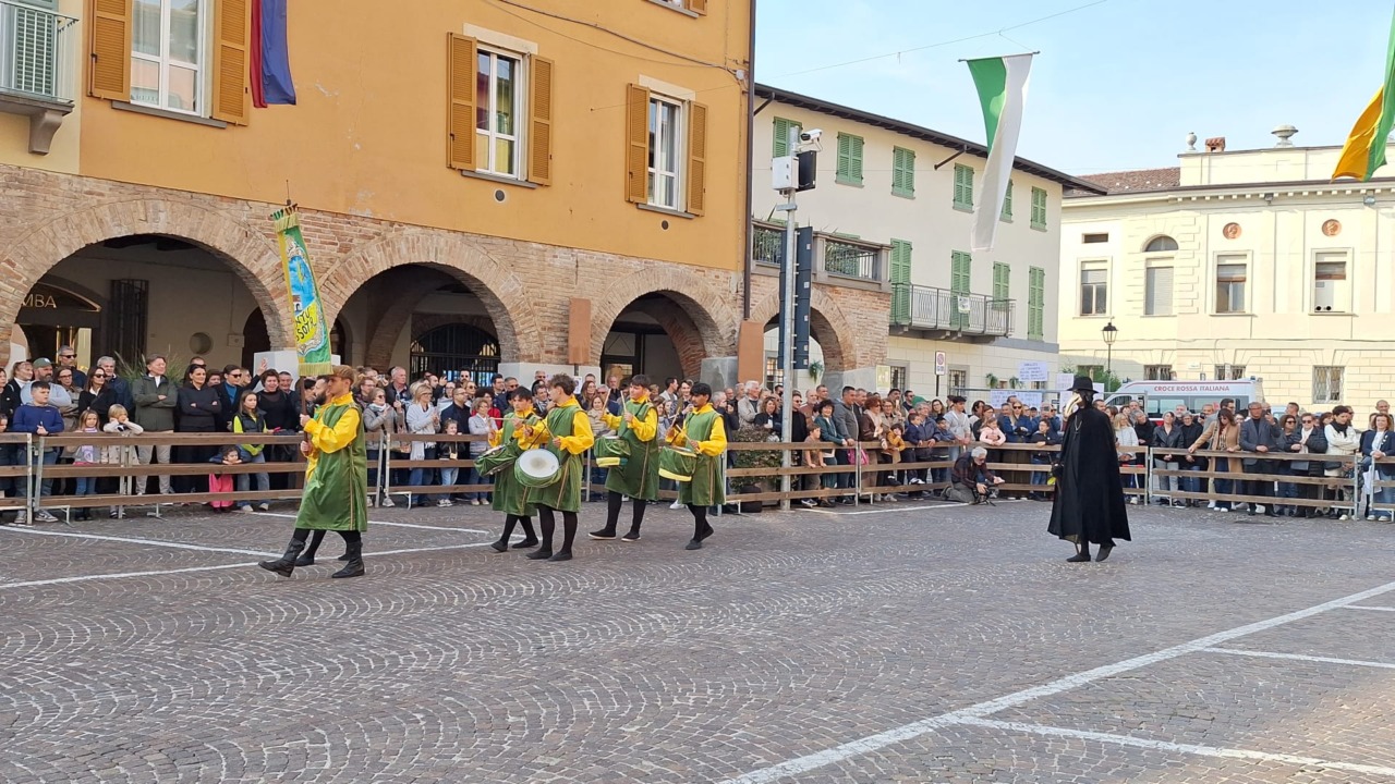 Un’atmosfera diversa quella che si è respirata oggi a Martinengo in occasione del 45esimo Palio dei Cantù. Città addobbata a festa, certo, abili sbandieratori, suggestivi squilli di tromba e rullo di tamburi, mirabili sfilate di 300 figuranti agghindati con sontuosi abiti frutto di un meticoloso lavoro sartoriale, spettacolari combattimenti di armigeri. Tutto bellissimo. Ma negli occhi di tutti un velo di tristezza e sulle labbra rammarico e rabbia per la decisone – sofferta e dettata dall’Ats di Bergamo – che l’Amministrazione e gli organizzatori hanno dovuto prendere, a soli due giorni dalla kermesse: annullare l’evento clou, la corsa in centro degli asinelli, a causa di una mail-bombing degli animalisti. Un colpo al cuore per i martinenghesi, legatissimi alle loro tradizioni, proprio nell’anno della celebrazione del 550esimo anniversario dalla morte del condottiero Bartolomeo Colleoni, e che proprio non ci stanno a passare per una comunità che maltratta gli animali. A risentirne l’immagine stessa della città e anche l’affluenza di pubblico all’appuntamento che richiede mesi di duro lavoro: è accorso sì numeroso ma non come gli scorsi anni, sotto i portici infatti sono rimasti spazi liberi.