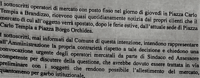 “La cronaca locale a Brandizzo si è trasformata in una favola o, meglio, in un cartone animato Disney. La Giunta Comunale ha deciso lo spostamento del Mercato del Giovedì dalla storica Piazza Carlo Tempia alla nuovissima Piazza Borgo Orchidea. Ma non è vero!”. Comincia così il comunicato stampa del gruppo consiliare Brandizzo Civica guidato da Roberta Favini.