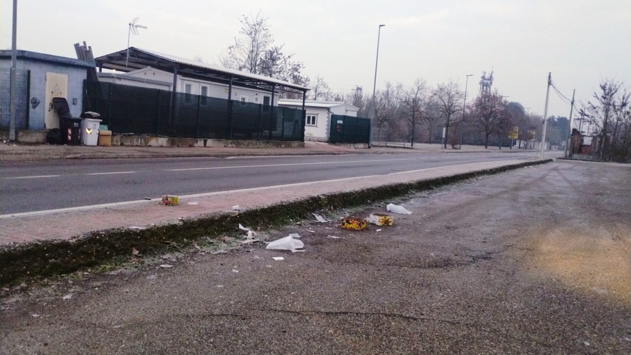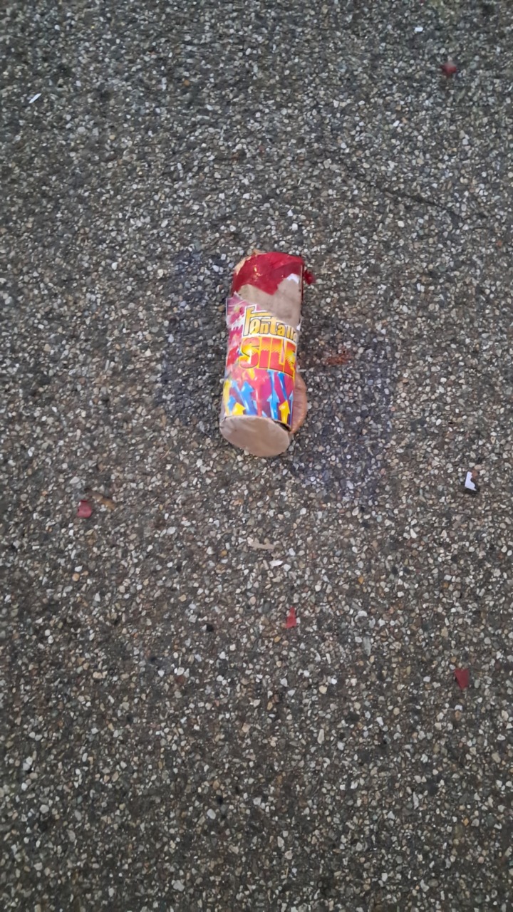 All’area ex Montefibre, in centro al piazzale i resti di diverse esplosioni ancora fumanti, non è chiaro se sia la continuazione di un piccolo incendio avvenuto nella notte o un “botto fresco” sparato all’alba…