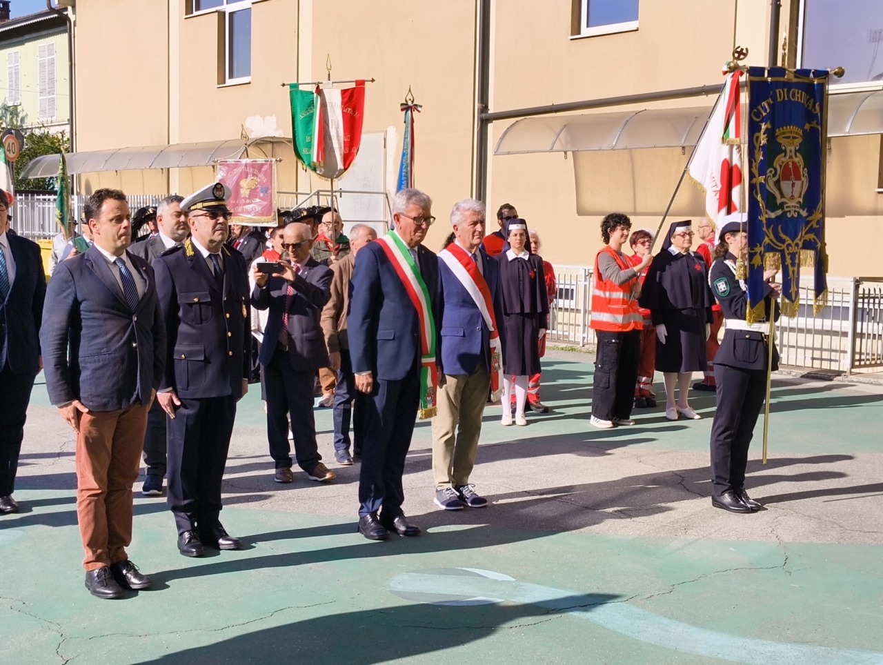A seguire, autorità e associazioni d’Arma si sono date appuntamento a Chivasso, accompagnate dalla Filarmonica «Giuseppe Verdi», per il tradizionale corteo che partendo da piazza d’Armi (monumento ai Caduti) ha toccato vari punti della città.