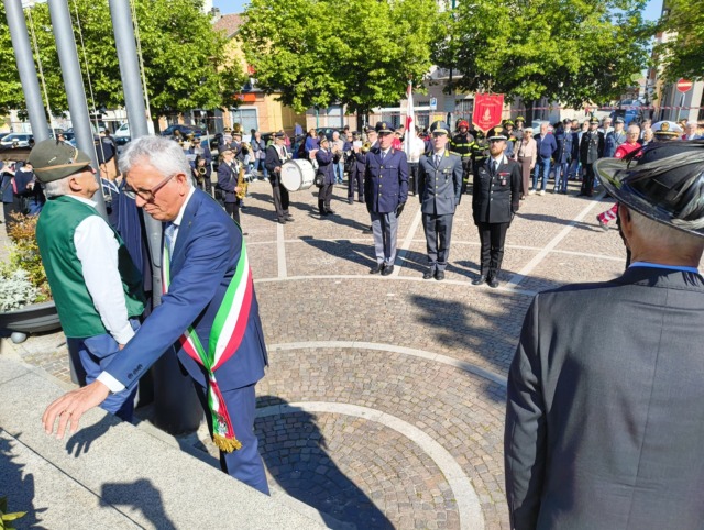 La cerimonia ha preso il via a Castelrosso, alla presenza del sindaco Claudio Castello, del suo vice Pasquale Centin, del presidente del Consiglio Comunale Alfonso Perfetto e dei consiglieri Matteo Doria, Bruno Prestia e Giovanni Scinica. Dopo la posa corona al monumento ai Caduti in piazza Assunta, il corteo aperto dalla Filarmonica Castelrossese ha raggiunto la scuola elementare per l’omaggio alla targa che ricorda il partigiano Leandro Savia.