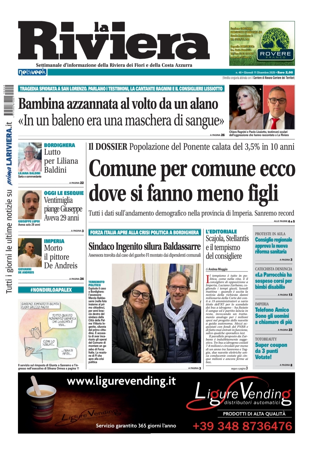 Il nuovo numero de La Riviera è in edicola come ogni giovedì da 35 anni con interviste, approfondimenti e notizie esclusive dalla provincia di Imperia. Eccone alcune