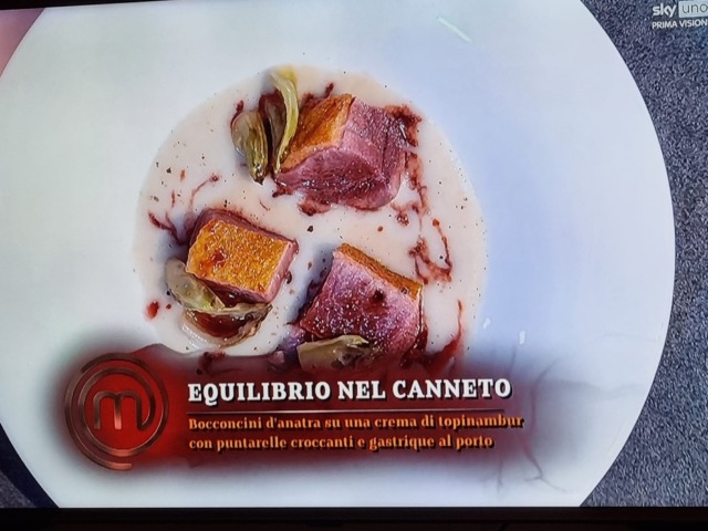 Il giovane olgiatese, che ha iniziato la sua performance con una tiratina d’orecchi dalla chef Chiara Pavan per gli eccessivi scarti nella lavorazione del topinambur, ha dato il meglio di sé davanti ai tre giudici Giorgio Locatelli, Antonino Cannavacciuolo e Bruno Barbieri proponendo dei succulenti bocconcini di petto d’anatra con puntarelle croccanti.