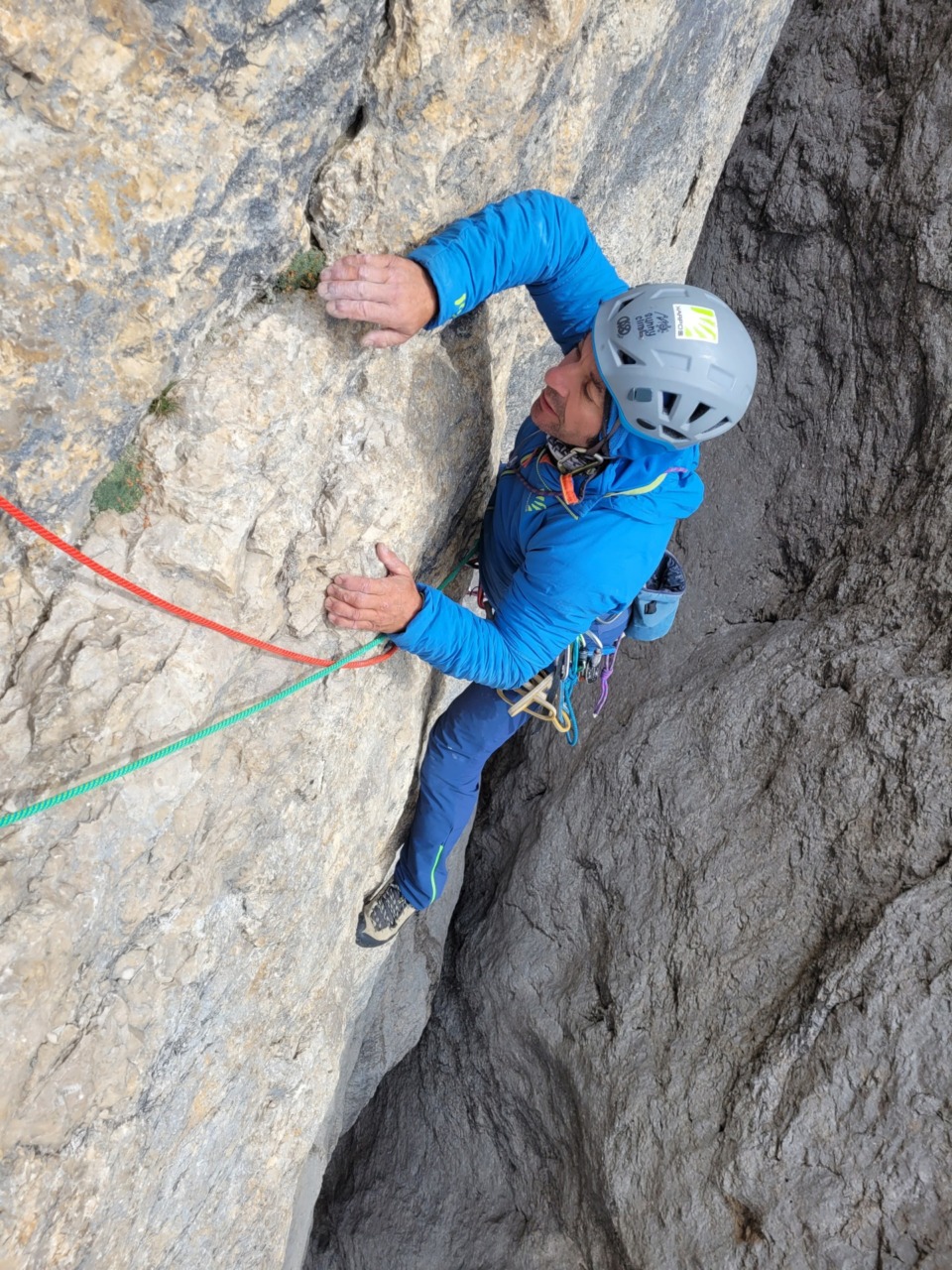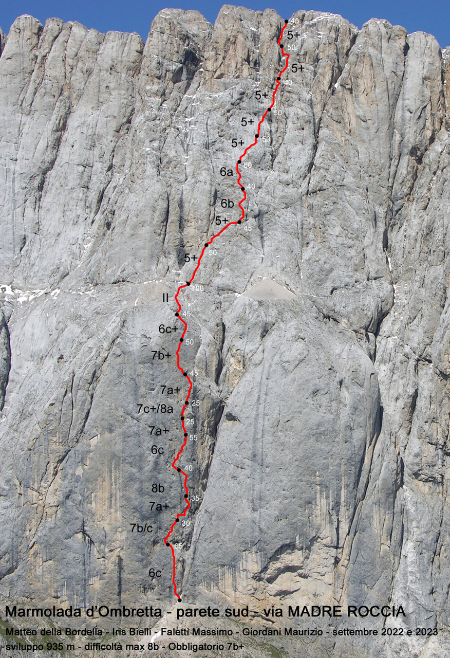Quando abbiamo iniziato ad aprire la via nel 2022 ci siamo subito resi conto che avremmo incontrato difficoltà. Ci siamo bloccati un anno, non sapevamo come andare avanti, e solo a quel punto abbiamo coinvolto Iris Bielli, all’epoca 19enne e alla sua prima esperienza. Nel 2023 siamo riusciti ad aprire la via, bella e difficile. E’ stata una grande soddisfazione perché la Marmolada è una delle pareti più belle delle Alpi. La forza è stata anche nel gruppo. Questa cordata è fatta di persone diverse tra loro: Maurizio è la leggenda, il grande esperto della Marmolada. Max è l’estroverso e Iris ha dato nuova linfa al team.