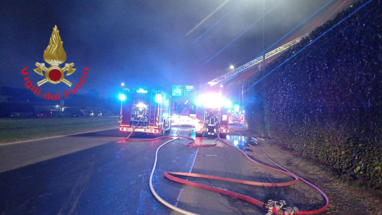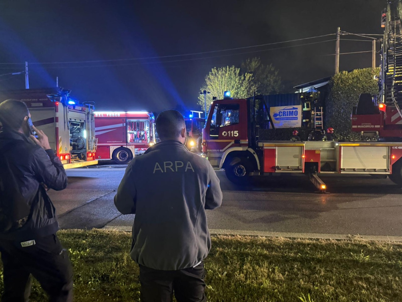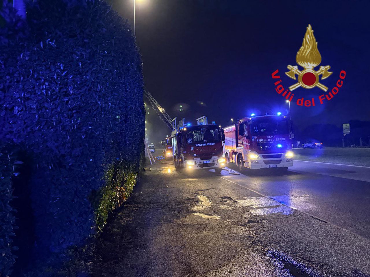Sul posto sono arrivati anche i tecnici dell’Arpa per le necessarie valutazioni sulla qualità dell’aria e viale delle Industrie è rimasta chiusa al traffico per consentire di operare in sicurezza.