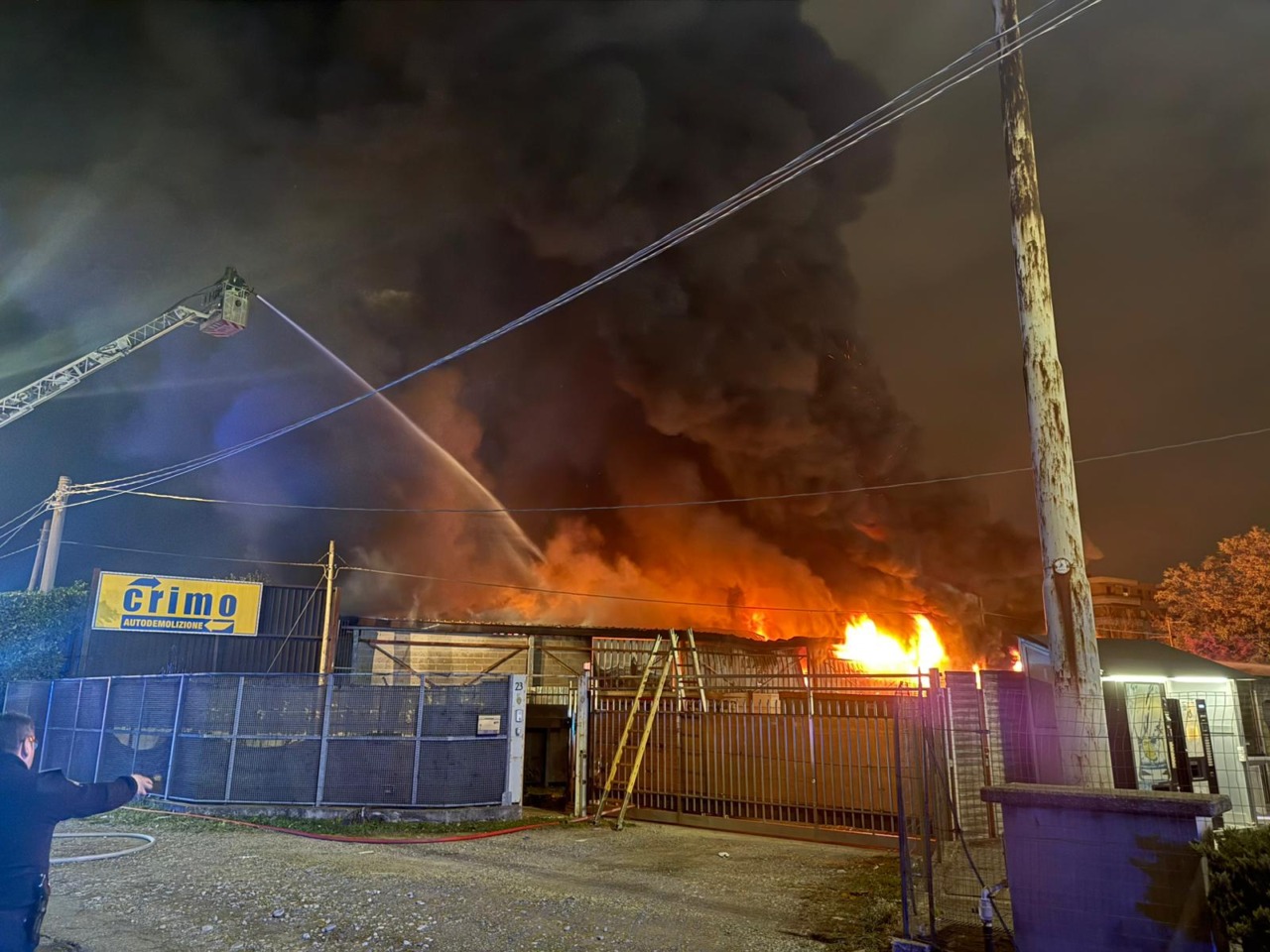 Devastante incendio nella notte a Monza all'autodemolitore Crimo di viale delle Industrie