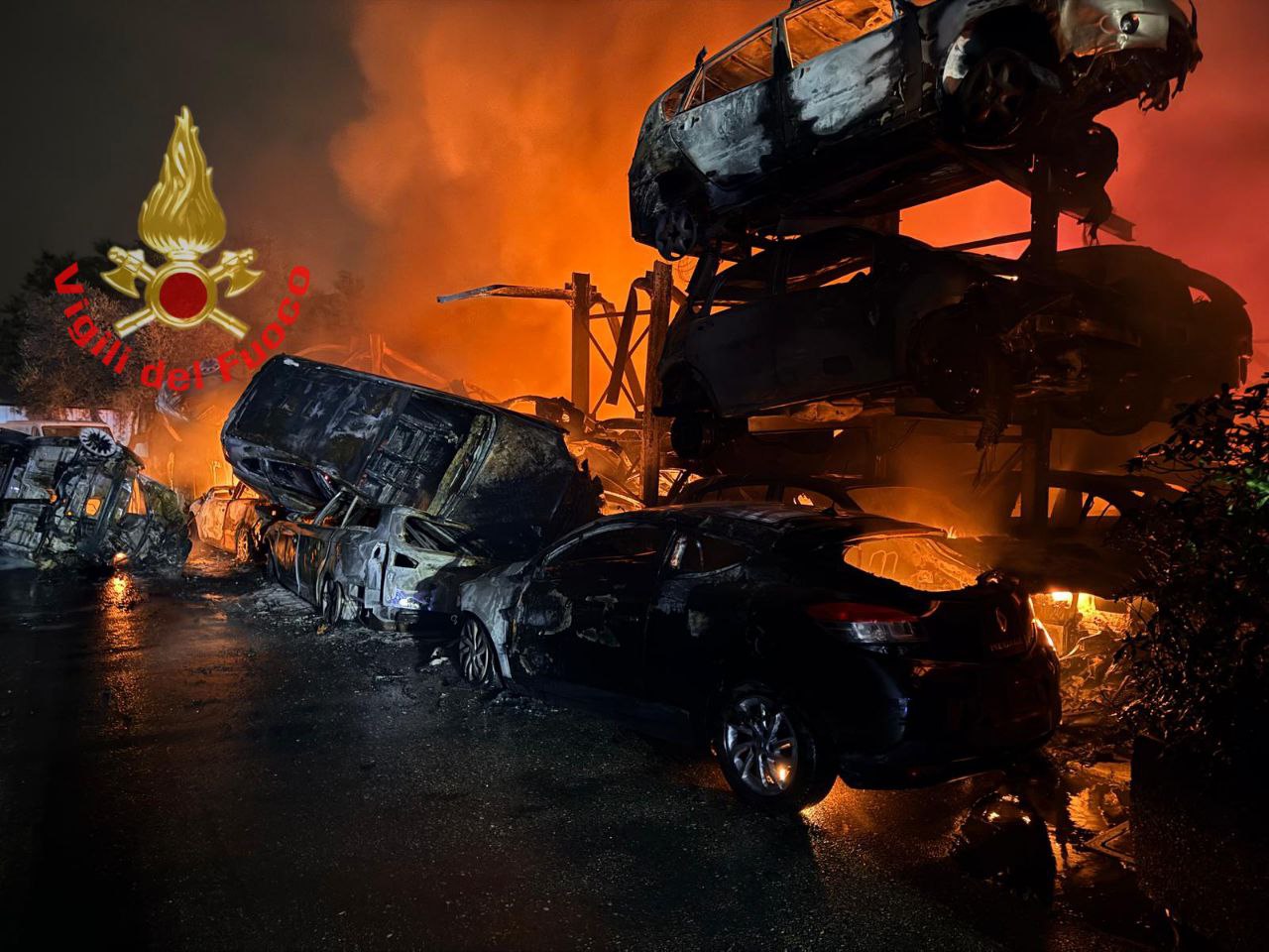 Il rogo si è ben presto propagato a diverse autovetture presenti nell’autodemolitore