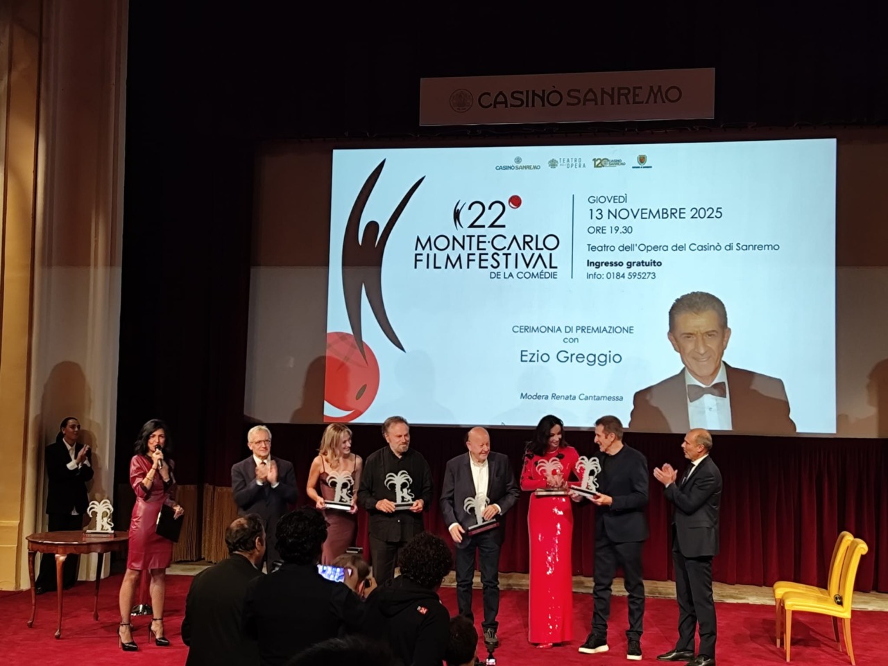 Grande successo giovedì sera al Teatro dell’Opera del Casinò di Sanremo per l’evento dedicato al gemellaggio con la rassegna monegasca ideata dal comico biellese, che ha visto sul palco, insieme allo stesso Ezio Greggio, Massimo Boldi, Franco Nero, Madalina Ghenea e Teresa Riott, premiati dall’Assessore al Turismo del Comune di Sanremo Alessandro Sindoni con il Trofeo dei 120 anni del Casinò di Sanremo.