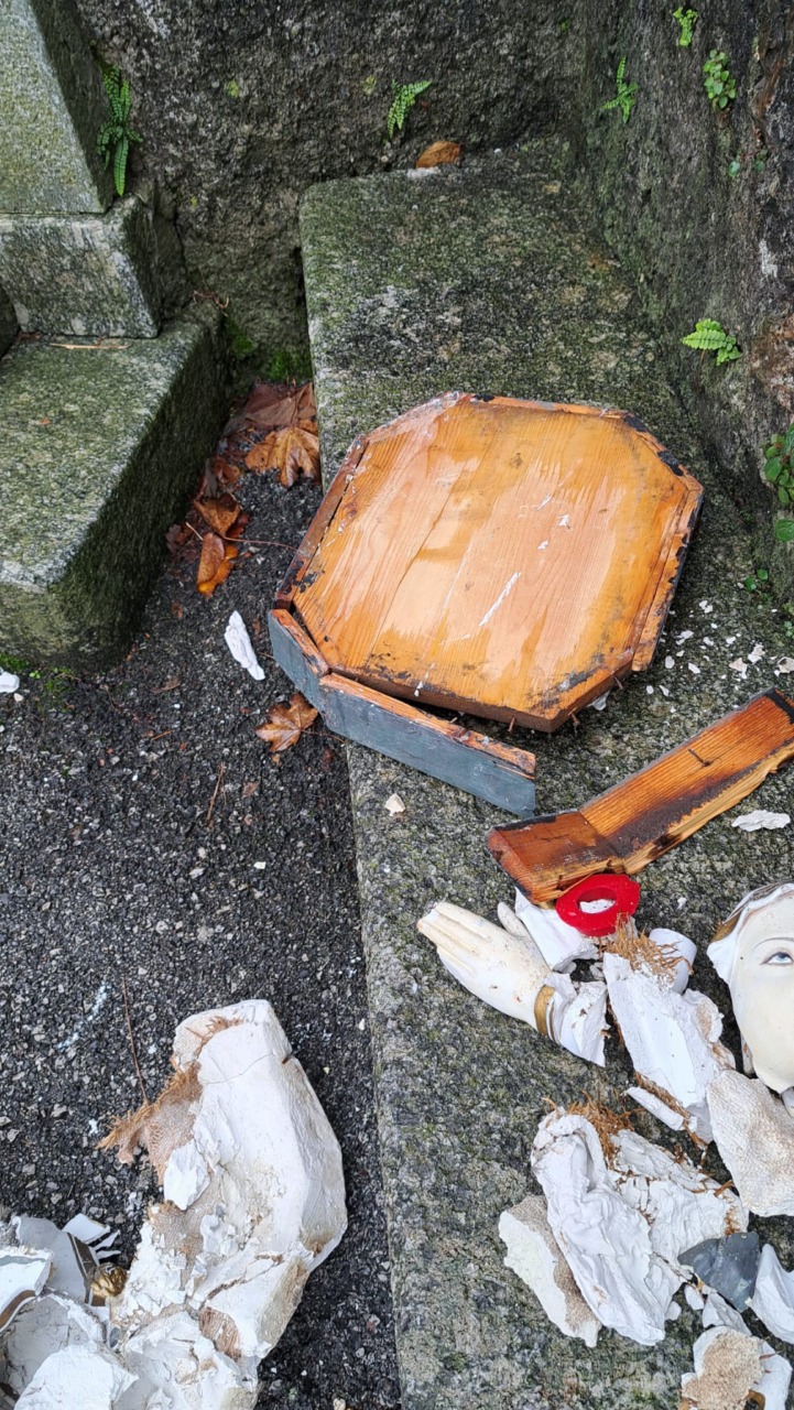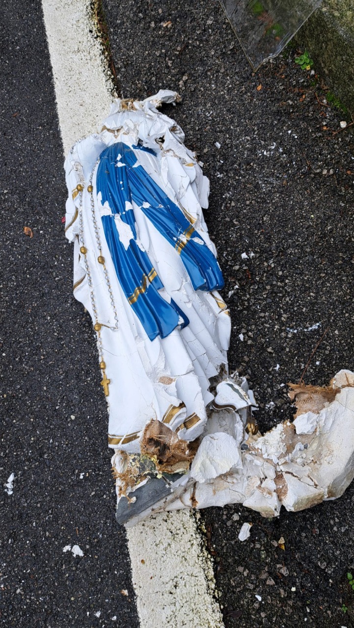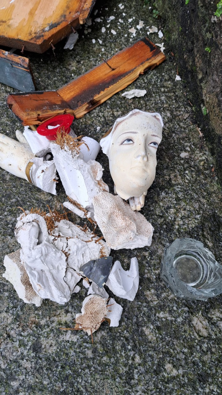 Intorno alle 23 dello scorso 31 ottobre, le Penne nere hanno rinvenuto la statua della Madonna della cappelletta di via Gajum in mezzo alla strada. Completamente a pezzi. Immediatamente hanno allertato sindaco, Carabinieri e Polizia locale.