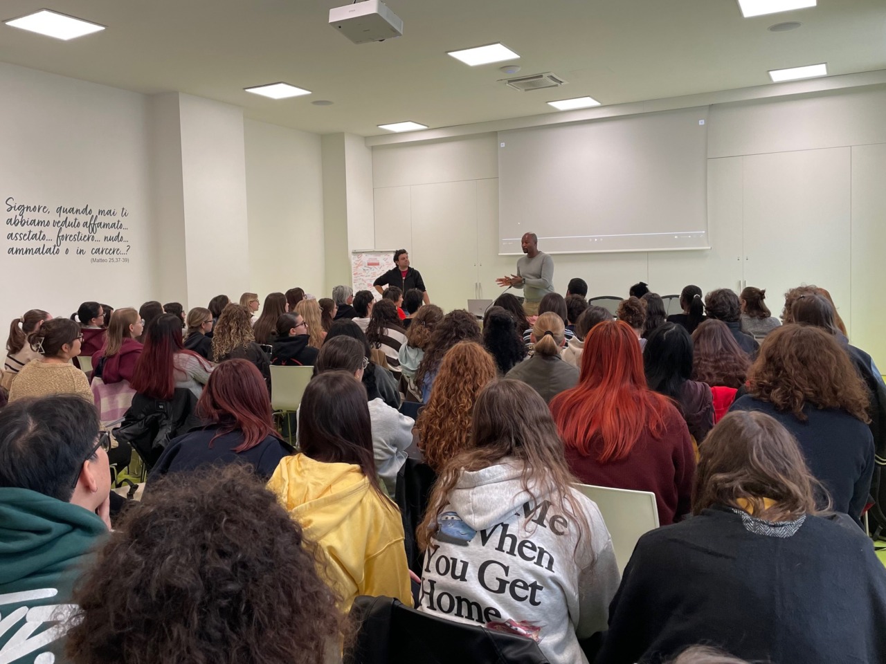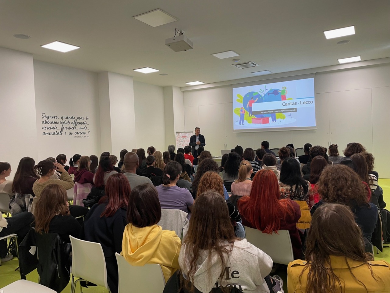 Una settantina di studenti dell’Università Statale di Milano sono stati ospiti della Casa della carità, nell’ambito del progetto “Cento lezioni per la pace”. Quella di ieri, mercoledì 29 ottobre 2025, è stata una mattinata intensa che è servita ai ragazzi come momento di riflessione sui temi della migrazione e dei conflitti. È stata anche un’occasione per capire l’impegno degli operatori e dei volontari che ogni giorno garantiscono l’attività della struttura di via San Nicolò che opera per dare accoglienza, aiuto e formazione alle persone in difficoltà. Perché se l’accoglienza e l’aiuto sono immediatamente visibili e conosciuti, non va dimenticata l’azione pedagogica degli operatori e dei volontari che – insieme alle persone assistite – cercano di costruire un percorso che offra nuova opportunità di vita a chi spesso si è smarrito.