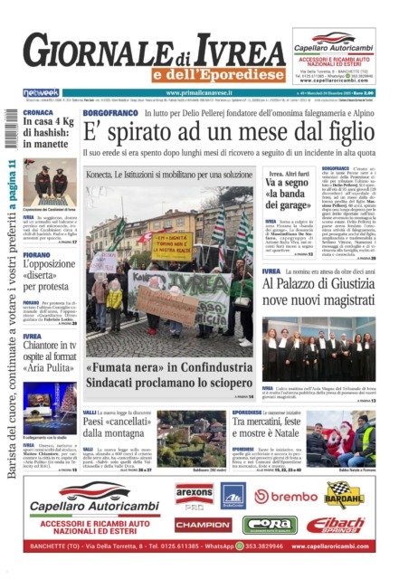 Da domani, mercoledì 24 dicembre 2025 il Canavese – edizione Rivarolo, Il Canavese – edizione Ciriè e Valli di Lanzo e Il Giornale di Ivrea sono in edicola. Ecco le prime pagine e le notizie principali.