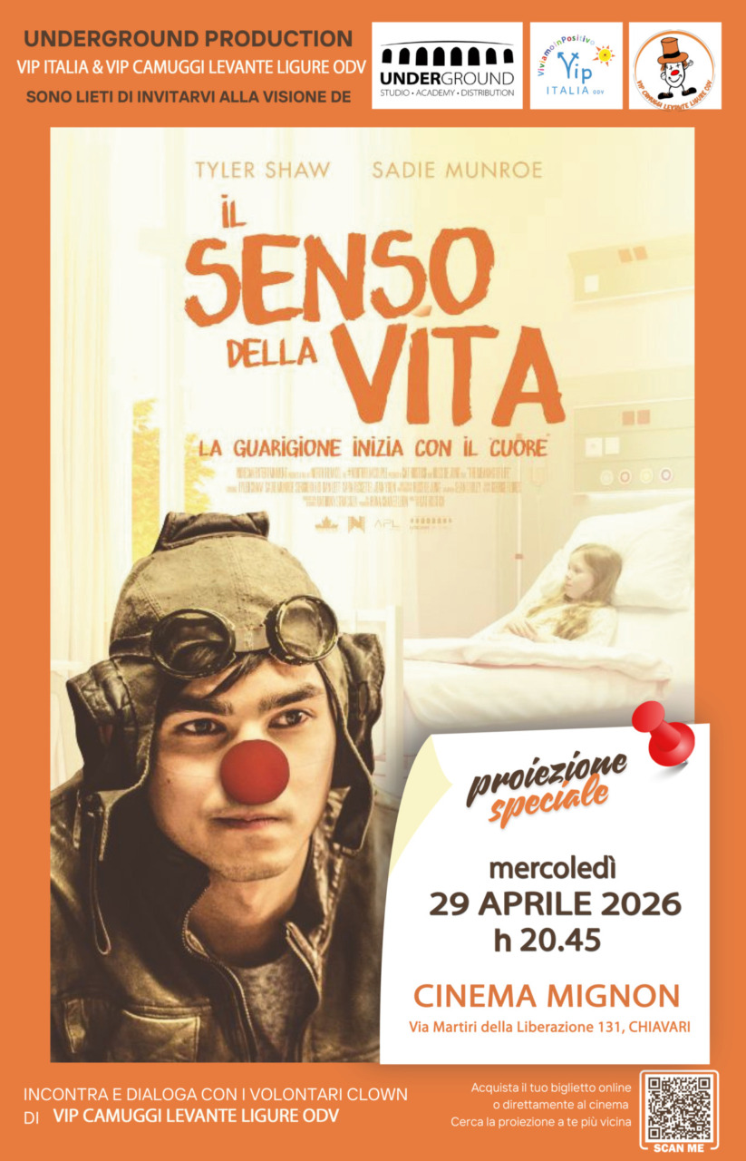 La pellicola, diretta da Cat Hostick e distribuita da Underground, racconta la storia di Finn Faber, un giovane musicista che lavora come clown terapeuta in un reparto pediatrico stringendo un legame profondo con Sophia, una bambina affetta da leucemia. Questo evento rappresenta la prima tappa ligure del tour di proiezioni organizzato da VIP ViviamoInPositivo Italia OdV in collaborazione con Uci Cinemas e vedrà la partecipazione dei volontari clown di VIP Camuggi Levante Ligure, che festeggiano i dieci anni di attività e saranno presenti in sala per condividere l’impatto concreto della clownterapia nelle strutture ospedaliere, nelle RSA, nei centri giovanili e nelle scuole del territorio.