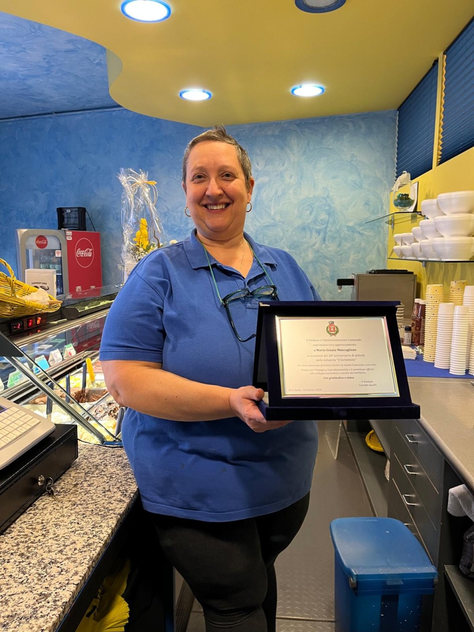 Ci sono storie che profumano di scelte coraggiose. È il caso di Maria Grazia Muscaglione e della sua gelateria, “Il Sorbettone”, che lunedì 30 marzo ha spento ben trenta candeline di attività. Un traguardo storico per Osio Sotto, celebrato tra palloncini, gadget, torte e l’abbraccio caloroso di un’intera comunità.