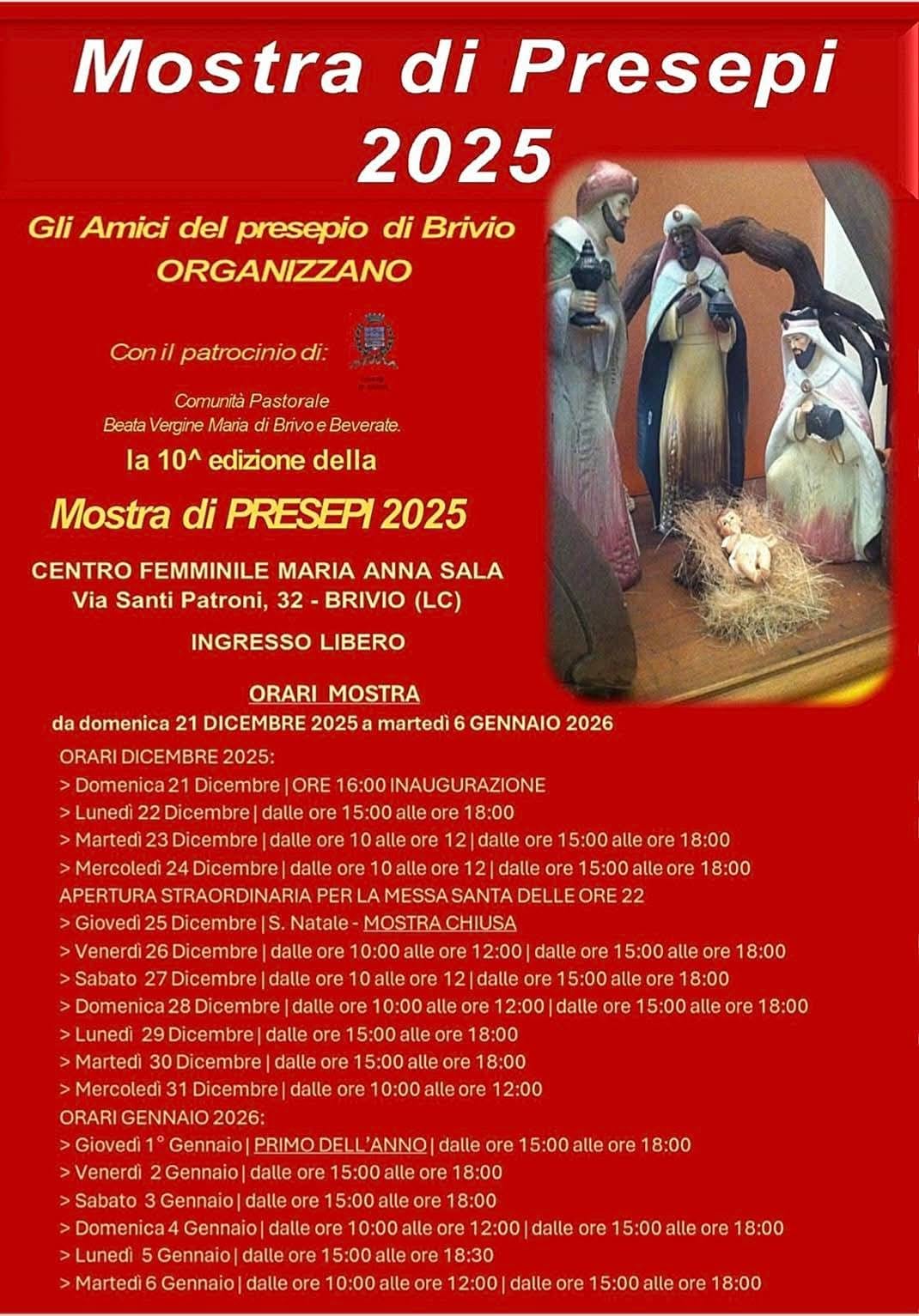 L’ingresso è libero e aperto a tutti. La Mostra dei Presepi di Brivio si conferma così un evento capace di rinnovarsi nel tempo, mantenendo vive le tradizioni e rafforzando il senso di appartenenza al territorio.