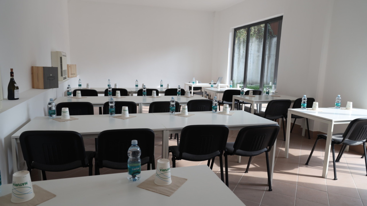 Caratterizzata da luci neutre per non compromettere la degustazione del vino durante le attività, ambienti dalle tinte bianche, uno stile industrial, moderno e green con arredamenti e complementi che donano un tocco personalizzato all’ambiente.
