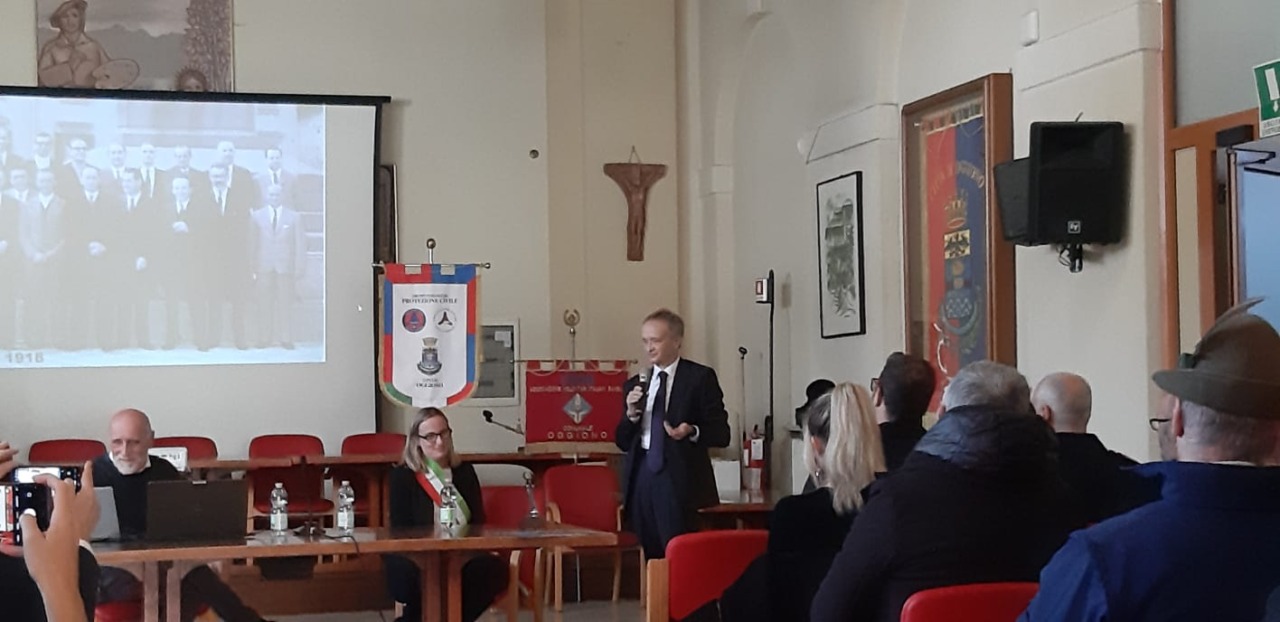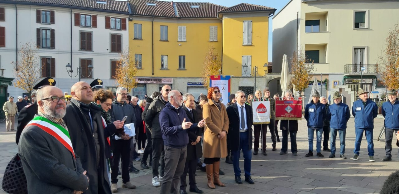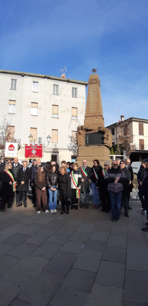 Nella mattinata di sabato 6 dicembre 2025, il sindaco Chiara Narciso, l’assessore Giovanni Corti e il prefetto di Lecco Paolo Ponta, di fronte alle autorità militari e civili, ai sindaci dei Comuni limitrofi, ai rappresentanti delle associazioni e ai cittadini, hanno tolto il telo protettivo e svelato il nuovo volto del manufatto. Il primo cittadino ha voluto ringraziare tutti i presenti, tra cui anche Alessandro Negri, consigliere della Provincia di Lecco, l’assessore regionale Gian Mario Fragomeli, il parroco don Maurizio Mottadelli, e una rappresentanza del Liceo Bachelet e dell’Istituto comprensivo Marco d’Oggiono, presente con Mattia Montanelli come sindaco del Consiglio dei Ragazzi. E’ stato lui a tenere il discorso davanti al Monumento, raccontando «con gli occhi di un ragazzo» come vedeva questo manufatto della piazza e come il restauro lo abbia aiutato a comprendere il valore civile dietro al gesto di prendersene cura. Proprio i valori del rispetto e della memoria sono stati evocati più volte anche durante l’intervento del prefetto di Lecco Ponta, avvenuto a inizio cerimonia nella sala consiliare: «Questi monumenti non sono celebrativi della guerra, anzi. Non commettiamo questo errore. Sono invece dei simboli di memoria collettiva di storie di uomini, soprattutto giovani, come noi che hanno perso la vita in modo tragico per colpa della guerra. La guerra che non porta mai nulla di buono e che è tragica sempre, in ogni tempo e luogo. Ringrazio dunque il Comune di Oggiono per questo importante intervento conservativo della memoria collettiva».