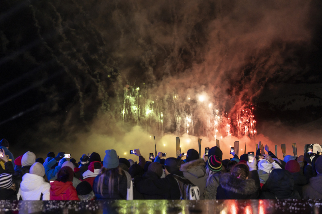 Qui la Fiamma è stata spostata in motoslitta fino all’iconico aereo militare di Mottolino, dove ha potuto proseguire il viaggio in parapendio, offrendo scatti di puro spettacolo fino all’atterraggio presso il Livigno Snow Park. Questo potente simbolo ha attraversato il paese come un racconto collettivo, fatto di sguardi, applausi e silenzi carichi di significato, fino a raggiungere il Fan Village in zona Isola, cuore pulsante della celebrazione.