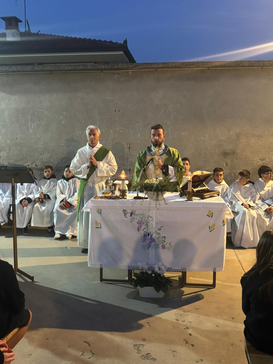 La giornata si è conclusa in un clima di profonda spiritualità e unione. Dopo l’incontro, la comunità si è raccolta per la Santa Messa celebrata all’aperto in Oratorio, un momento significativo di preghiera e ringraziamento per il nuovo inizio. A seguire, la festa è proseguita con una cena condivisa, occasione preziosa per cementare ulteriormente i legami tra le famiglie, i catechisti, gli animatori e il Parroco, in una vera e propria celebrazione della vita comunitaria.