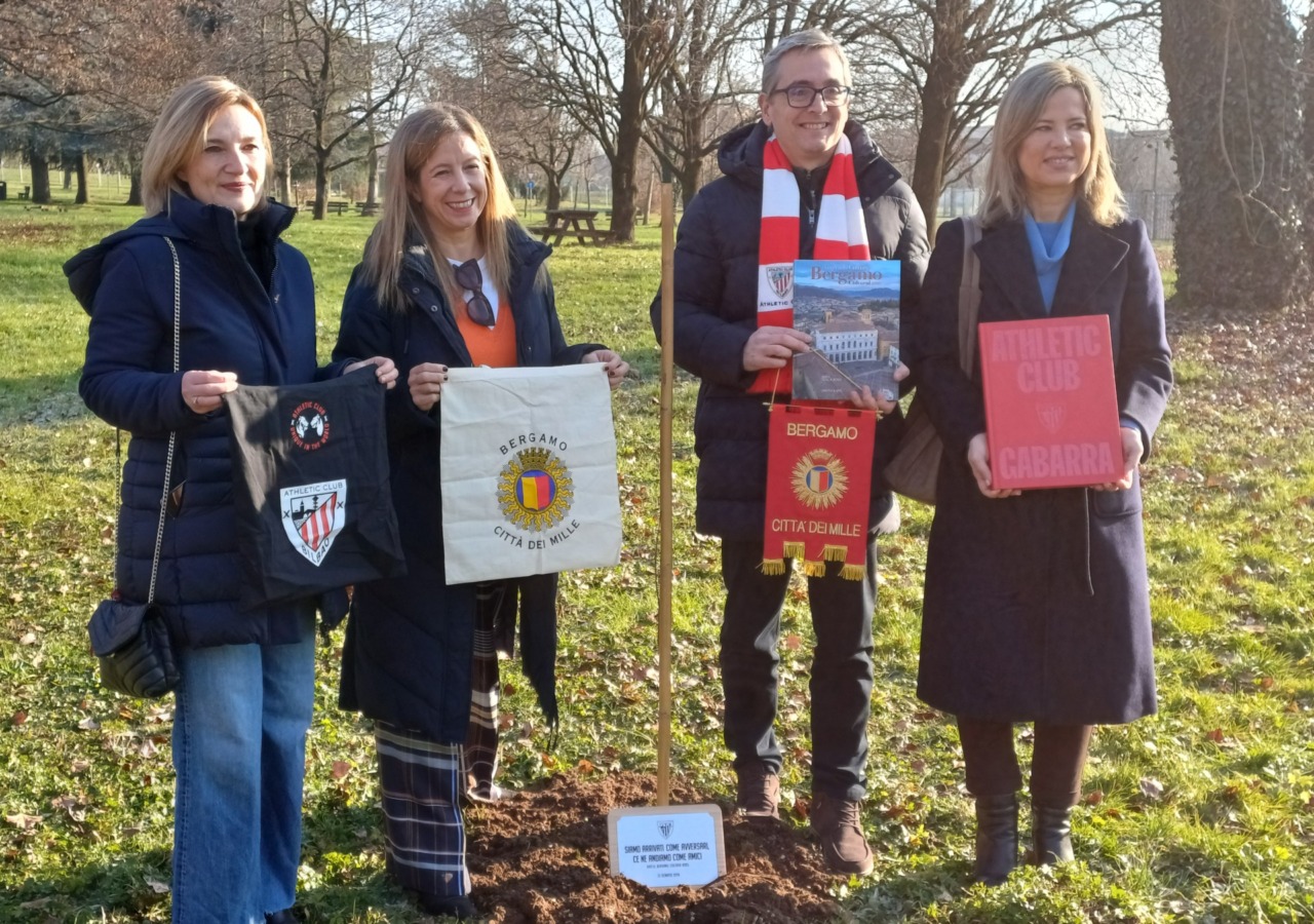 Un gesto di amicizia prima della sfida sportiva. Questa mattina (mercoledì 21 gennaio), al Parco Goisis nel quartiere Monterosso, la Fondazione Athletic Club Bilbao ha portato a Bergamo l’iniziativa “Follow Something Unique”, piantando un alberello dell’Albero di Gernika – simbolo di libertà e giustizia per il popolo basco – come segno di rispetto e fratellanza tra le due città.