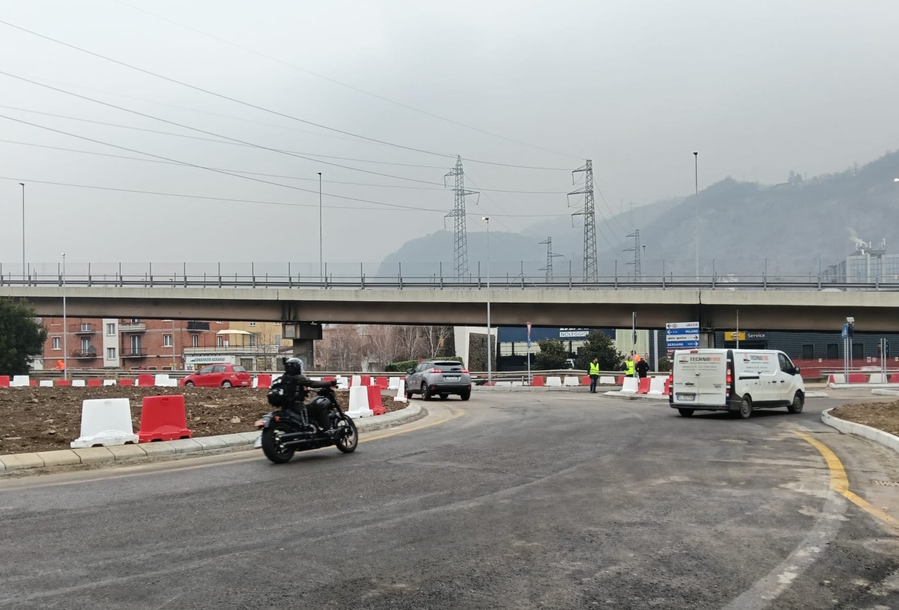 La nuova infrastruttura prevede due rotonde principali. La prima, di dimensioni ridotte, è stata collocata vicino alla rampa della dogana. La seconda, più ampia, con un diametro di 60 metri, è stata realizzata al posto del vecchio parcheggio davanti all’ingresso principale del centro sportivo Bione. La sua funzione è convogliare il traffico proveniente da Pescate verso il nuovo Quarto Ponte, la cui inaugurazione è prevista per lunedì 19, integrandolo con la rete stradale circostante.