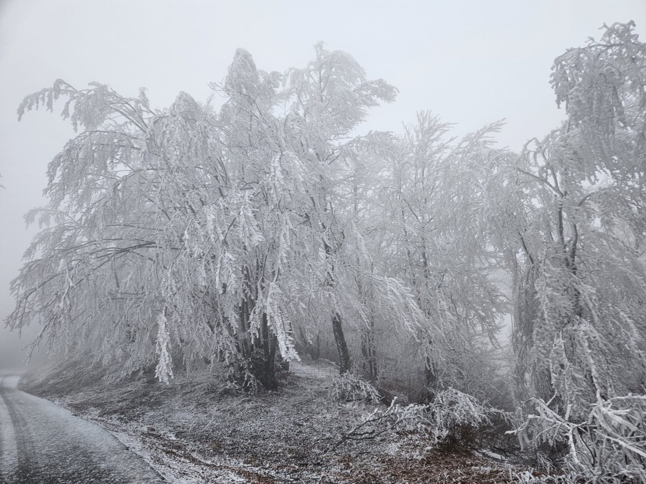 Le immagini delle foto arrivate in redazione mostrano la strada forestale e i crinali avvolti in un’atmosfera spettrale, dove il silenzio è interrotto solo dal suono del ghiaccio che si incrina.