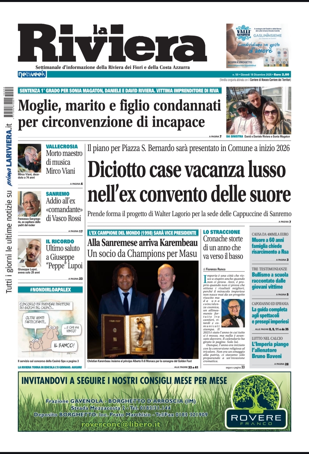 Il nuovo numero de La Riviera è in edicola come ogni giovedì da oltre 35 anni. Il numero di oggi è l’ultimo per il 2025, ci rivediamo in edicola giovedì 8 gennaio. Buona feste ai nostri lettori!