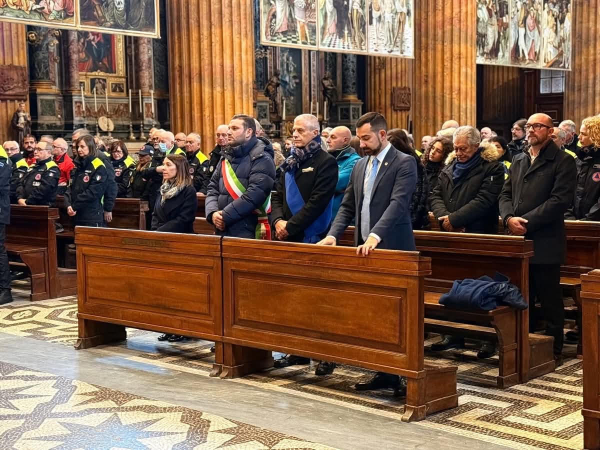 La celebrazione, accompagnata dal coro della Sacra Famiglia diretto dal maestro Corrado Rossitto, ha visto una partecipazione numerosa di volontari, con il Duomo “colorato” dal giallo e dal blu delle divise della Protezione Civile, a testimonianza di un forte senso di appartenenza e unità.