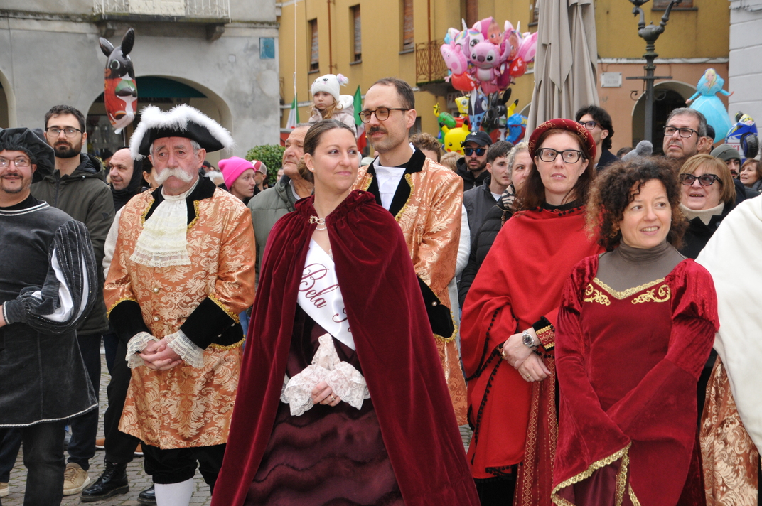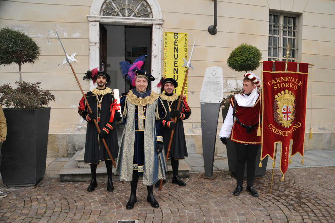 Il Carnevale di Crescentino entra nel vivo. Nel pomeriggio di oggi, sabato 7 febbraio,  dal parco Tournon ha infatti  preso il via il corteo storico con il Conte Tizzoni, al secolo Alessio Jerinò, scortato dai suoi due armigeri, Vittorio Tabbia e Luca Viteritti, poi arrivato al Palazzo Municipale per il tradizionale proclama dello “ius primae noctis” che tradizionalmente apre i festeggiamenti carnevaleschi.