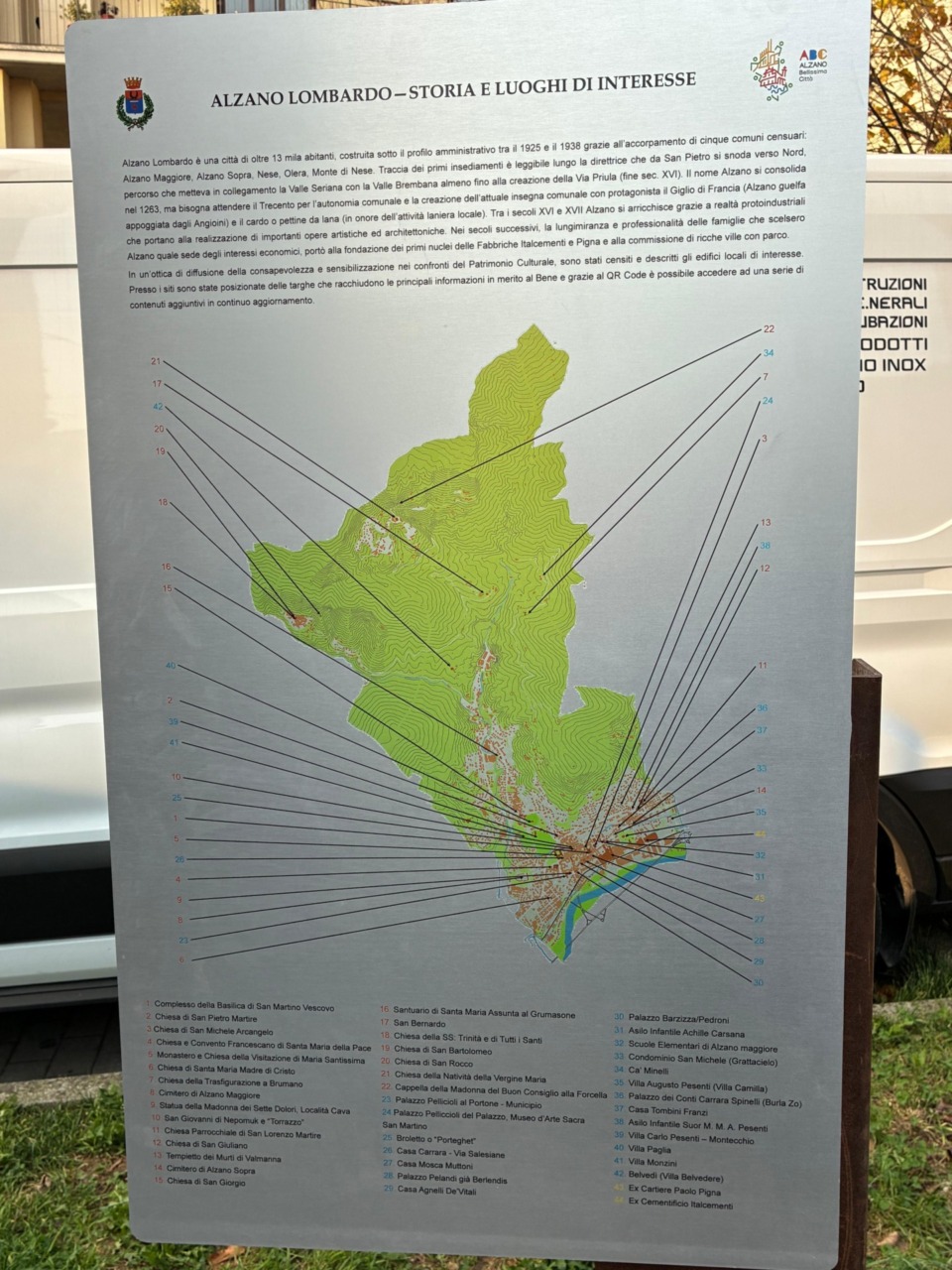 Da sabato 8 novembre, ad Alzano Lombardo la storia si legge anche sui muri. È stato inaugurato il nuovo percorso delle targhe culturali e turistiche: 45 pannelli sparsi in tutta la città per raccontare i luoghi più significativi e curiosi del territorio.