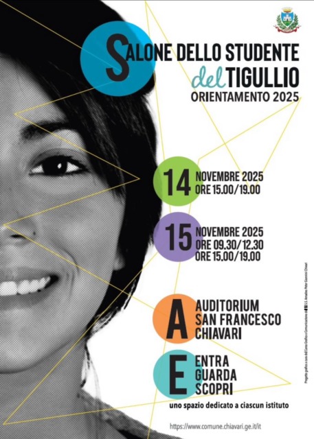 Conto alla rovescia per il “Salone dello Studente del Tigullio – Orientamento 2025”, un’iniziativa, organizzata dal Comune di Chiavari, ormai consolidata che ha l’obiettivo di accompagnare i ragazzi delle classi terze della scuola secondaria di primo grado nella scelta del percorso formativo successivo.
