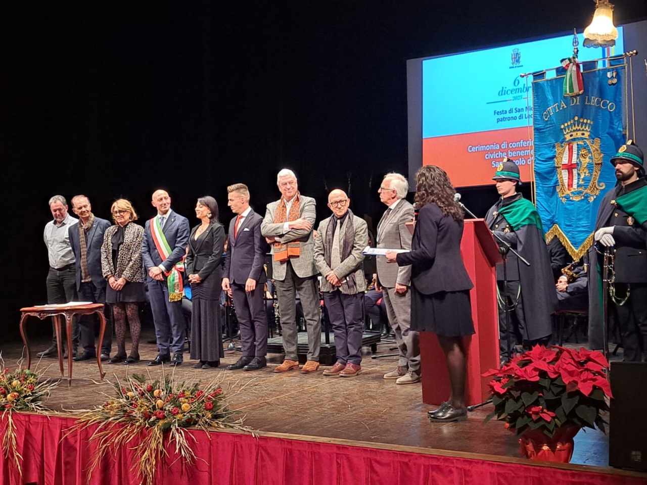 Nel tradizionale giorno del Santo patrono, San Nicolò, in un teatro tutto esaurito, il sindaco Mauro Gattinoni ha consegnato le civiche benemerenze alla presenza del senatore Tino Magni, della presidente della Provincia Alessandra Hofmann, del prefetto Paolo Ponta, del prevosto don Bortolo Uberti, dei membri della Giunta e del Consiglio e delle autorità cittadine. Fra il pubblico anche i rappresentanti delle città gemellate con Lecco: Igualada (Spagna), Overijse (Belgio), Macon (Francia) e Szombathely (Ungheria), con i quali Gattinoni ha rinnovato i patti di amicizia al termine dell’evento.