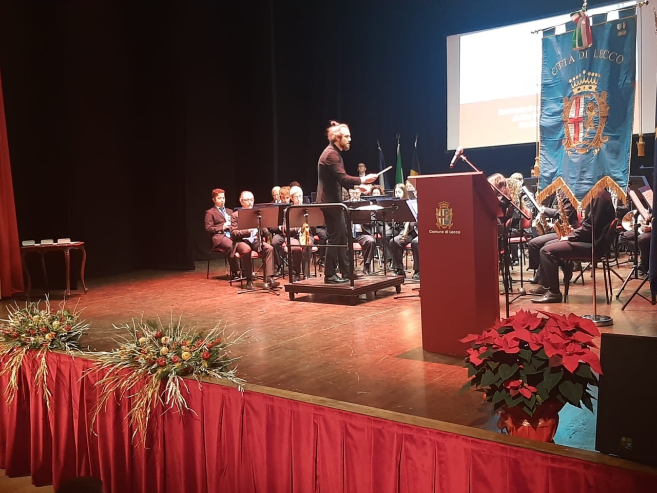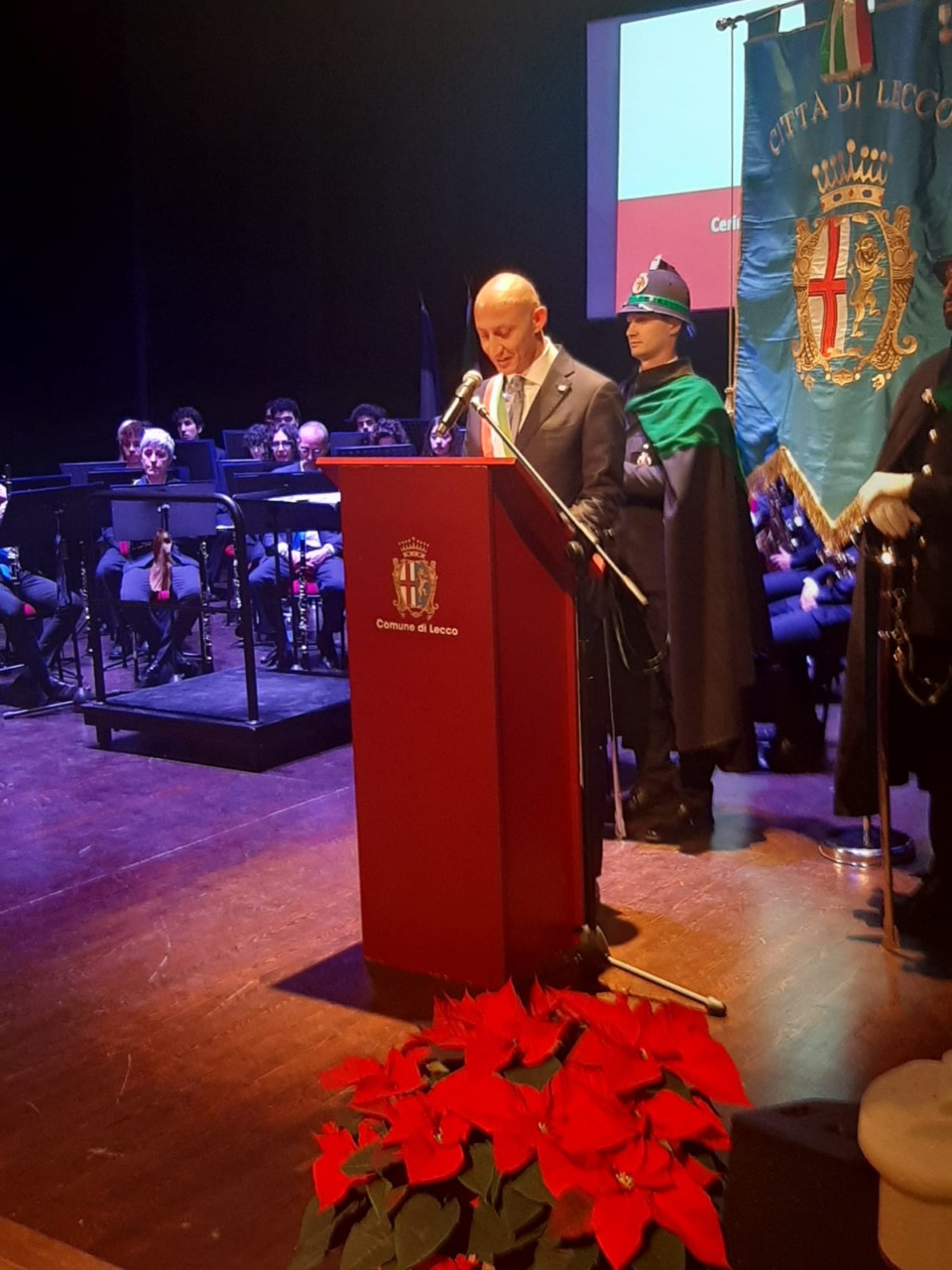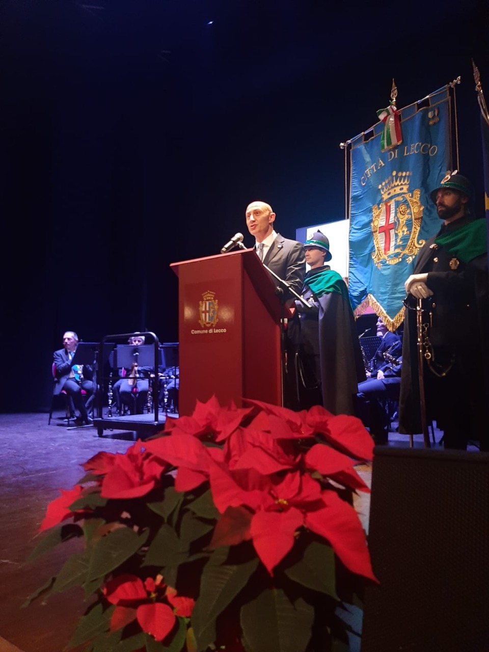 Ad aprire la serata è stato il corpo musicale Alessandro Manzoni, che nella rinnovata cornice del Teatro della Società ha eseguito tre brani. Poi è stata la volta di un emozionatissimo sindaco di Lecco, che nel suo lungo discorso ha ricordato: