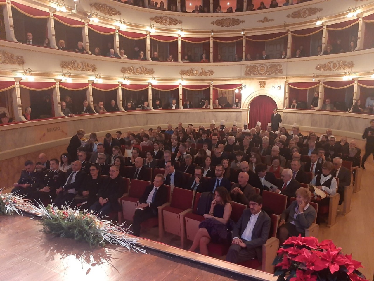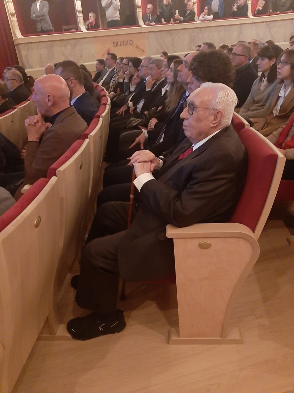 “Questa serata assume un significato ancora più profondo, perché siamo tornati a casa, nella nostra casa culturale e istituzionale: il Teatro della Società, scrigno della nostra identità collettiva. Vorrei partire proprio da qui: dalla bellezza di poterci guardare negli occhi in un luogo che narra di noi più di mille parole. Un luogo che racconta l’ambizione di una città che vuole crescere, che crede nella forza educante della bellezza, che ha fiducia nel potere della cultura e dell’arte di plasmare le coscienze di ciascuno, per migliorare così la comunità tutta.”