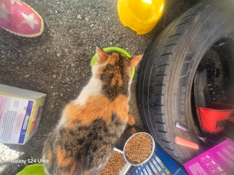 Non conosceremo mai l’intera storia della gatta viaggiatrice, ma la parte che conosciamo inizia il 26 giugno 2023, quando, presso una colonia felina nei dintorni dell’hub della ditta Arco Spedizioni di Monza (vicinissima al Parco Canile di Via San Damiano), compare una gatta tricolore sconosciuta, con un gattino al seguito.