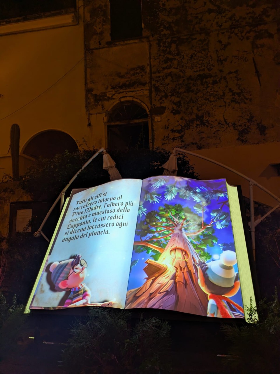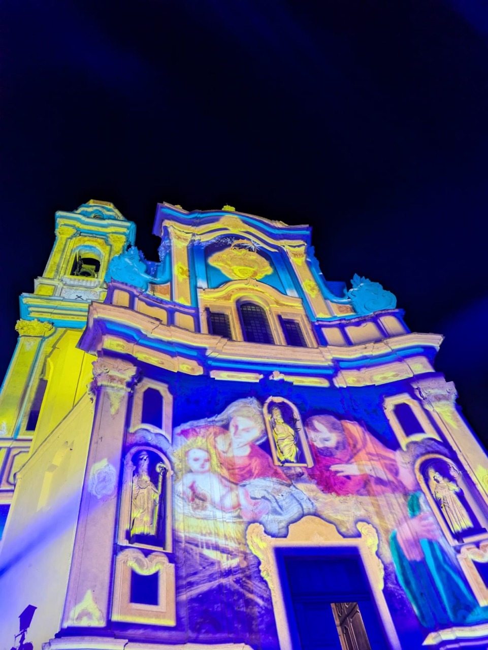L’inaugurazione ha permesso al pubblico di scoprire per la prima volta l’inedito percorso luminoso firmato da una delle aziende leader nel settore delle illuminazioni e del video mapping. Quattro edifici simbolo del borgo — il Castello dei Clavesana, la Chiesa dei Corallini, la Chiesa di San Nicola e l’ex stazione ferroviaria sulla Via Aurelia (sede della Polizia Locale) — sono stati illuminati da spettacolari illustrazioni e giochi di luce, in un dialogo continuo con l’architettura storica del paese. La piazza dei Corallini si è rivelata il cuore pulsante dell’installazione: oltre alla proiezione sulla facciata della chiesa, l’intera piazza è stata immersa in un total color che ha avvolto pubblico e ambientazioni in un’atmosfera unica. Molto apprezzata anche la sorpresa interattiva per i bambini, che ha riscosso entusiasmo tra i più piccoli.