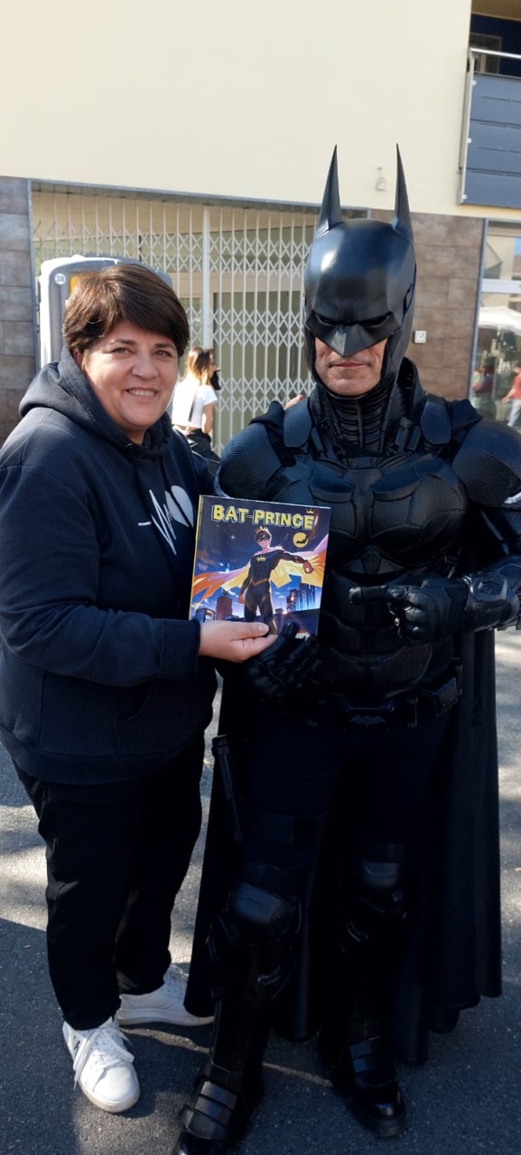 “Da piccolo ho affrontato diverse difficoltà fisiche che mi hanno reso più sensibile al dolore e alle fragilità degli altri – ha spiegato – Quelle esperienze mi hanno formato e spinto a diventare la persona che sono oggi, trasformando ogni ostacolo in forza e ogni sfida in opportunità di dono. Con il tempo, insieme a persone speciali come mia moglie Sara e amici che considero fratelli e sorelle, ho costruito un cammino fatto di abbracci, ascolto, speranza e gentilezza. Il mio costume da Bat-Prince si è evoluto con me: da semplice simbolo a strumento concreto per donare sorrisi e luce nei momenti più bui”.