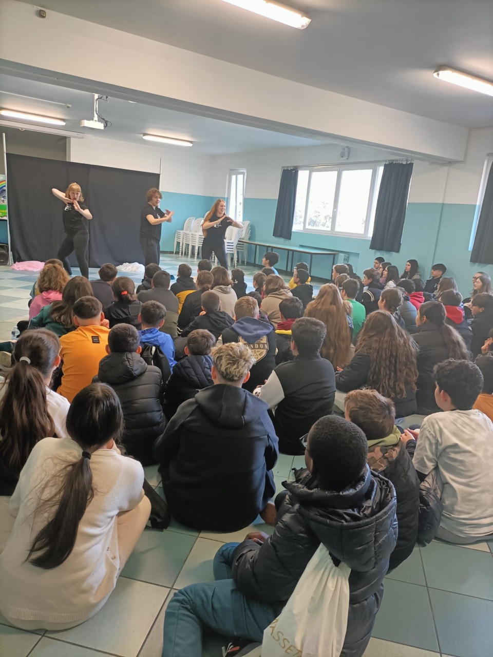 Tre attori madrelingua inglese, specializzati in TIE (Teatro Didattico Interattivo), hanno portato in scena uno spettacolo della durata di un’ora. Gli alunni sono stati chiamati a interagire attraverso piccoli sketch guidati e momenti di ballo.