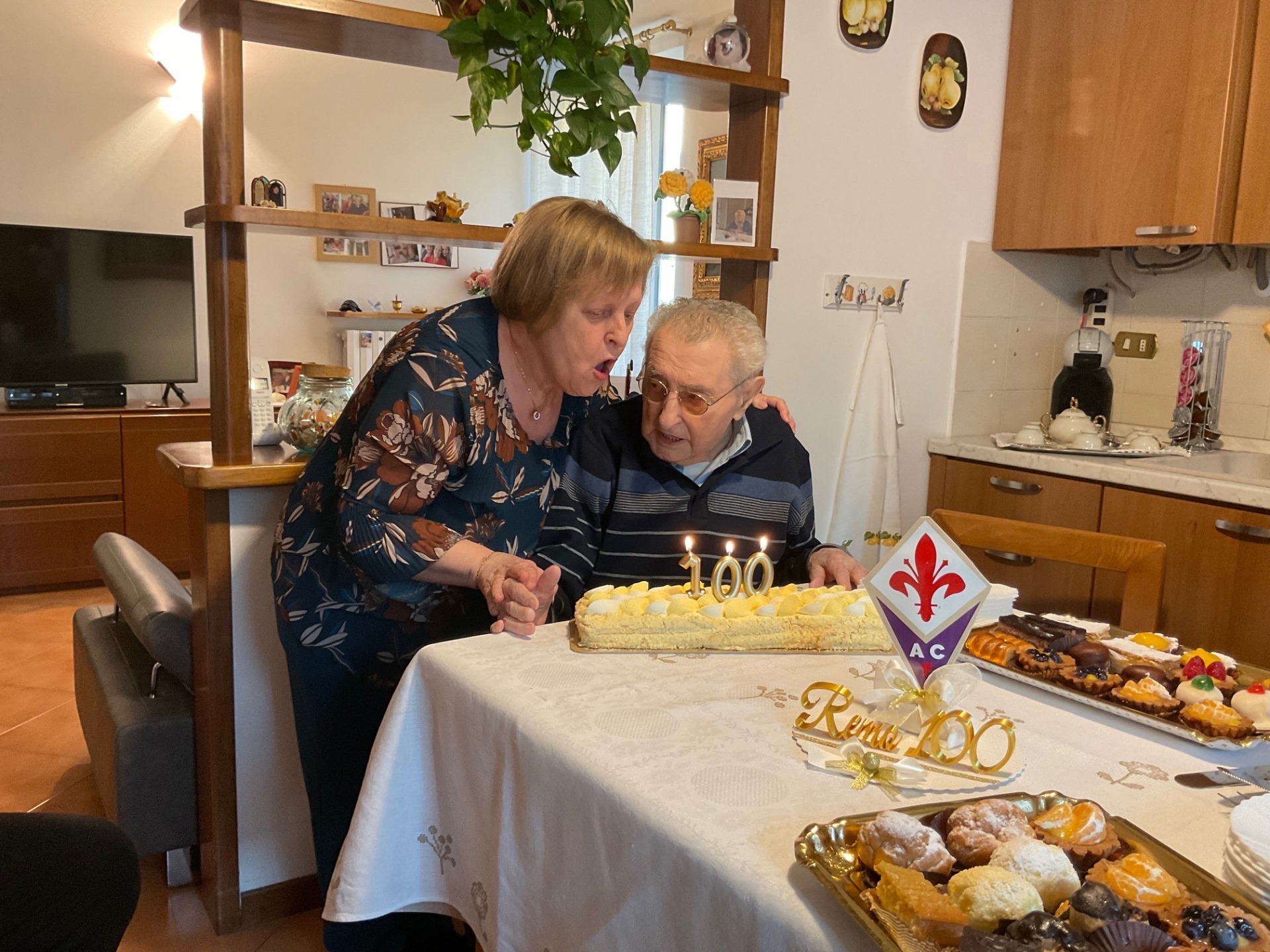 Oggi a celebrare il suo secolo di vita sono stati la figlia Ornella, il genero Claudio Mazzoleni e i nipoti Sara e Andrea. Un momento di festa vissuto con grande serenità, in cui non sono mancati gli oggetti cari al festeggiato, tra cui la bandiera e lo scudetto della sua amata Fiorentina.