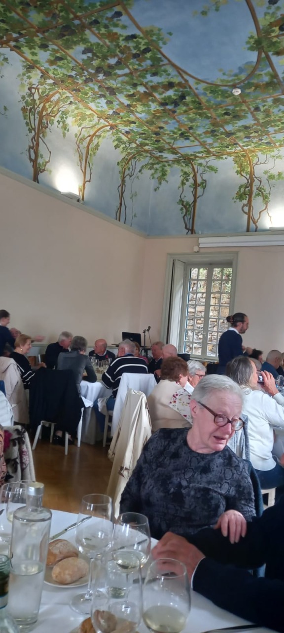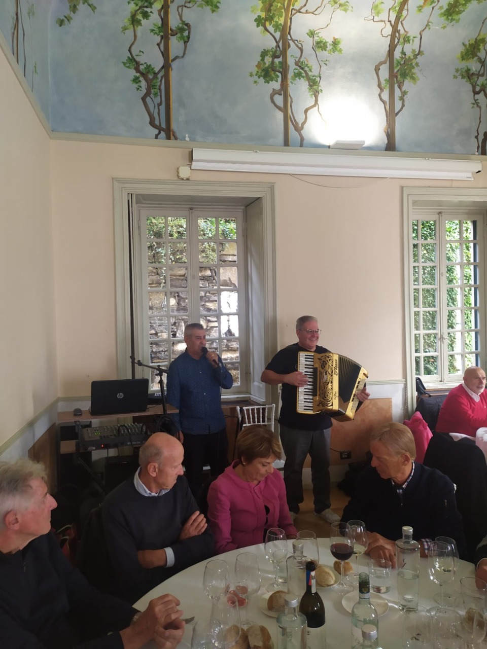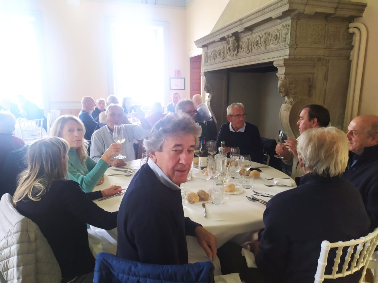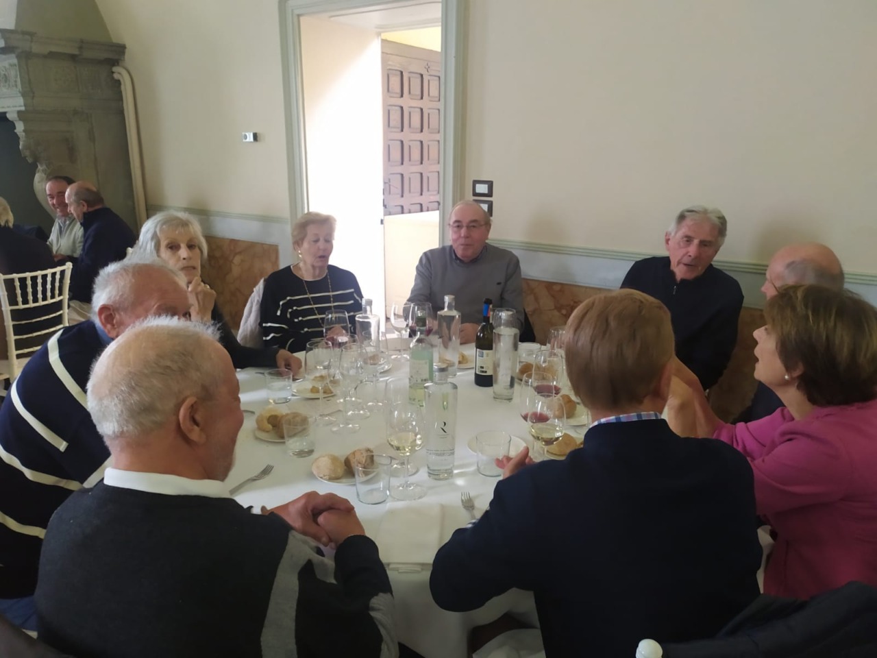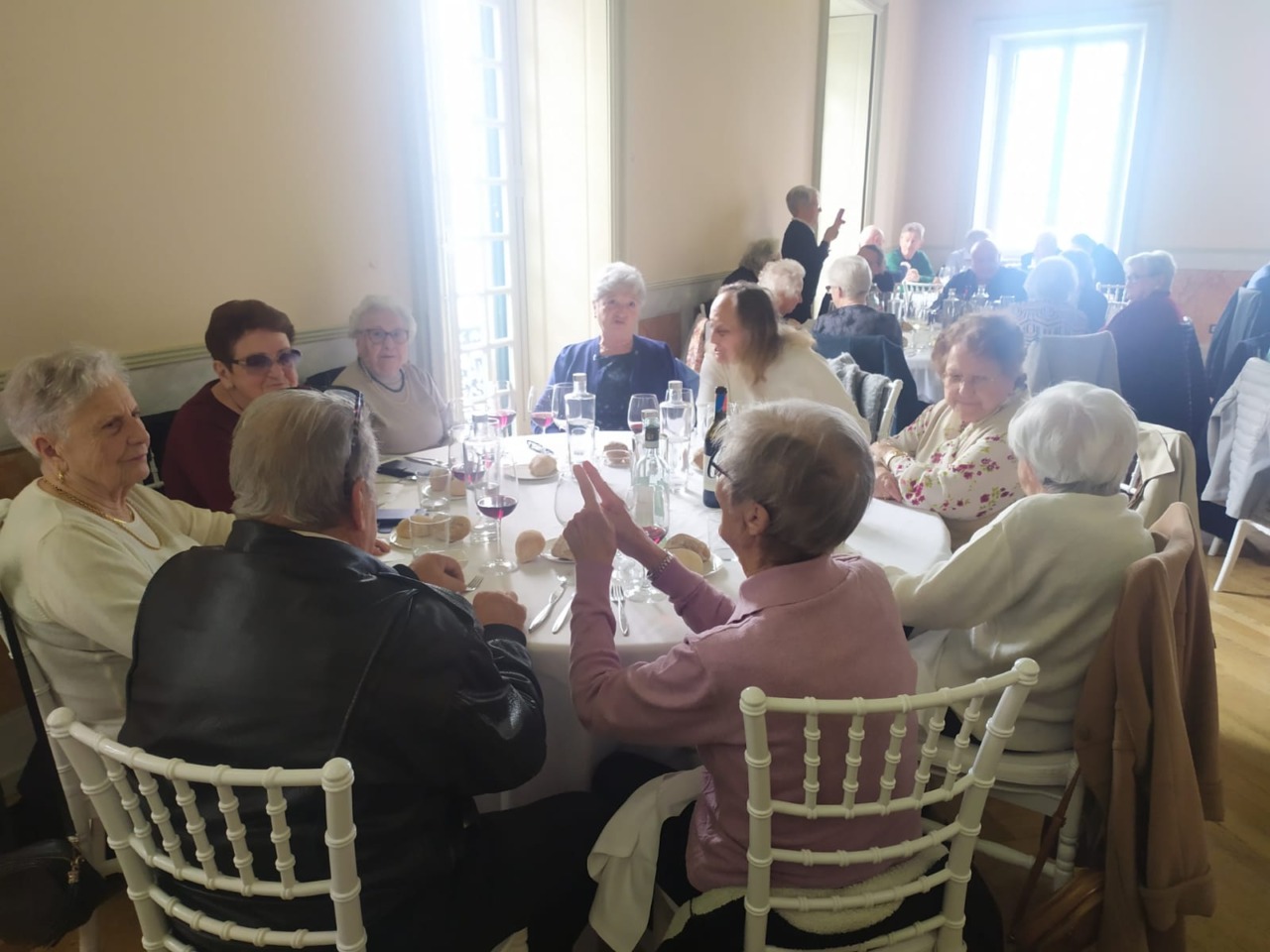Al termine della funzione religiosa, gli ospiti si sono trasferiti nella magnifica “Sala del Pergolato” di Villa Cipressi, affacciata sui giardini e sul lago, dove li attendeva un pranzo conviviale preparato con cura. Il menù, pensato per valorizzare i sapori della tradizione locale, ha riscosso grande apprezzamento tra i commensali, che hanno potuto gustare piatti genuini in un clima di allegria e serenità. La sala, elegantemente allestita per l’occasione, ha fatto da cornice a momenti di dialogo, ricordi e nuove amicizie.