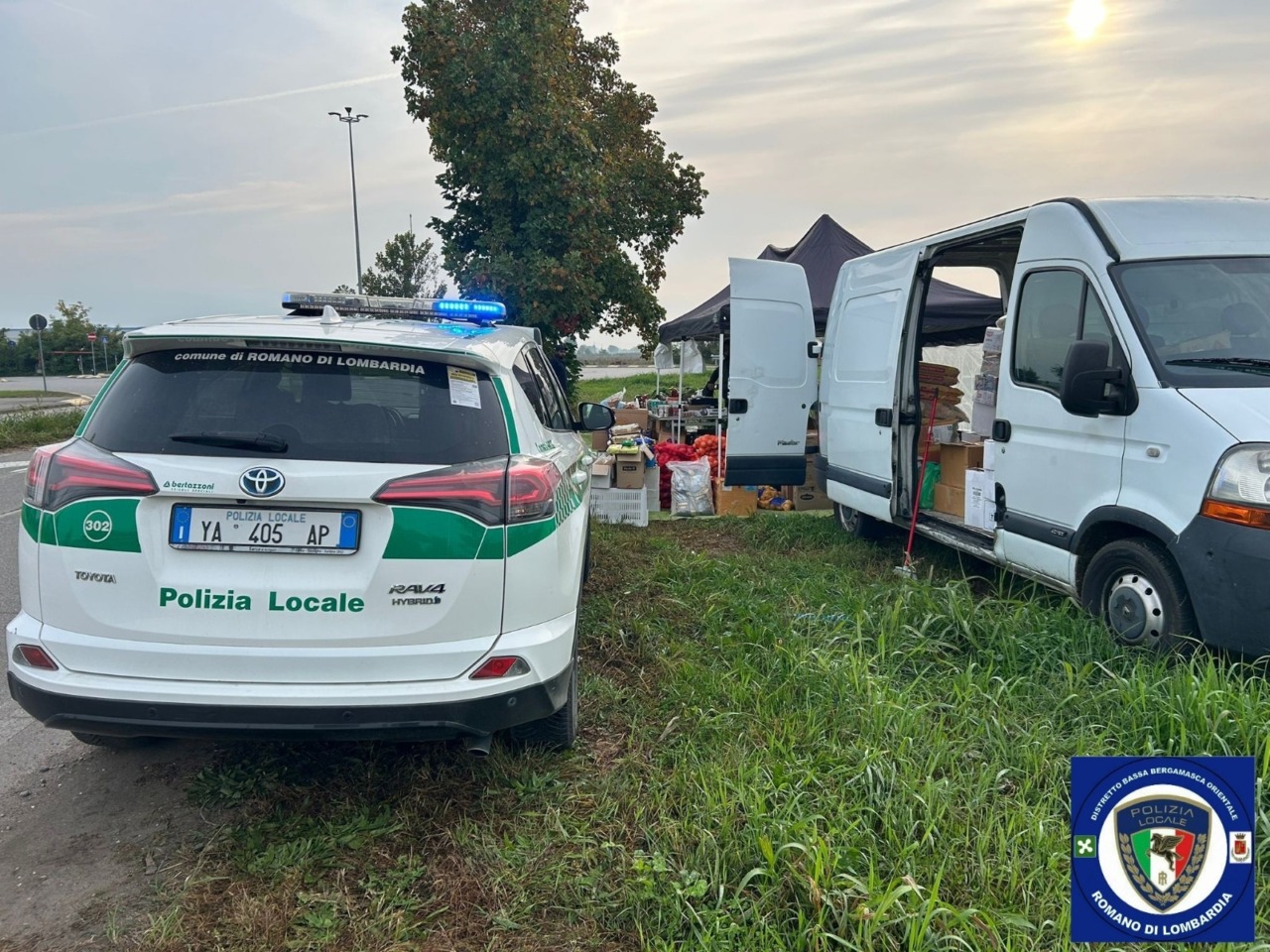 Controlli della Polizia Locale contro il commercio irregolare nei Comuni di Romano, Bariano, Covo e Cortenuova.