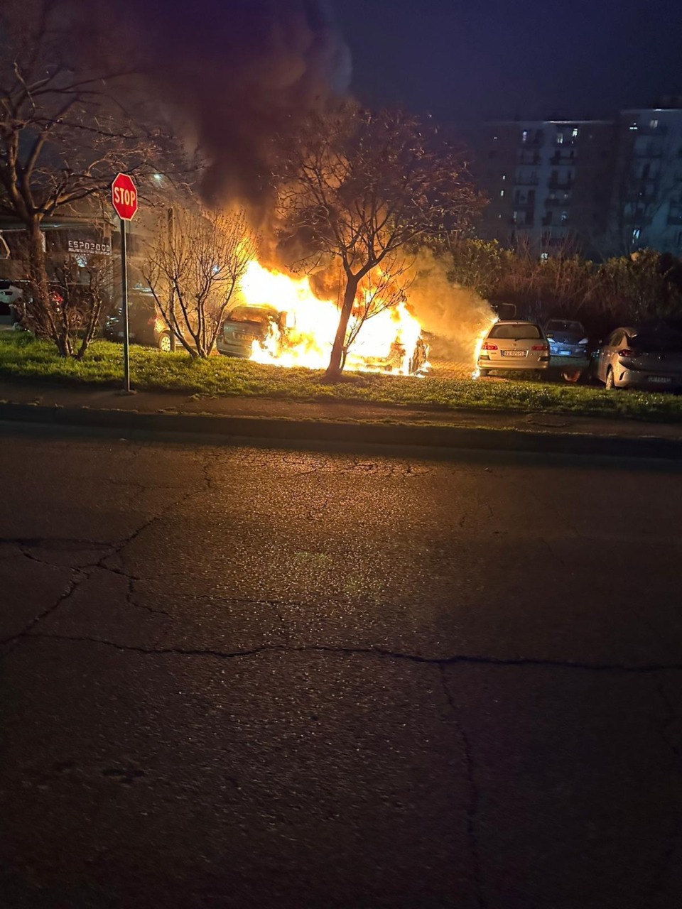 Le fiamme sono partite da un’auto ibrida andata in cortocircuito. Poi le stesse si sono allargate ad altri veicoli in sosta: pare quattro.
