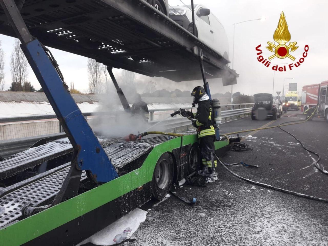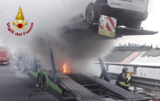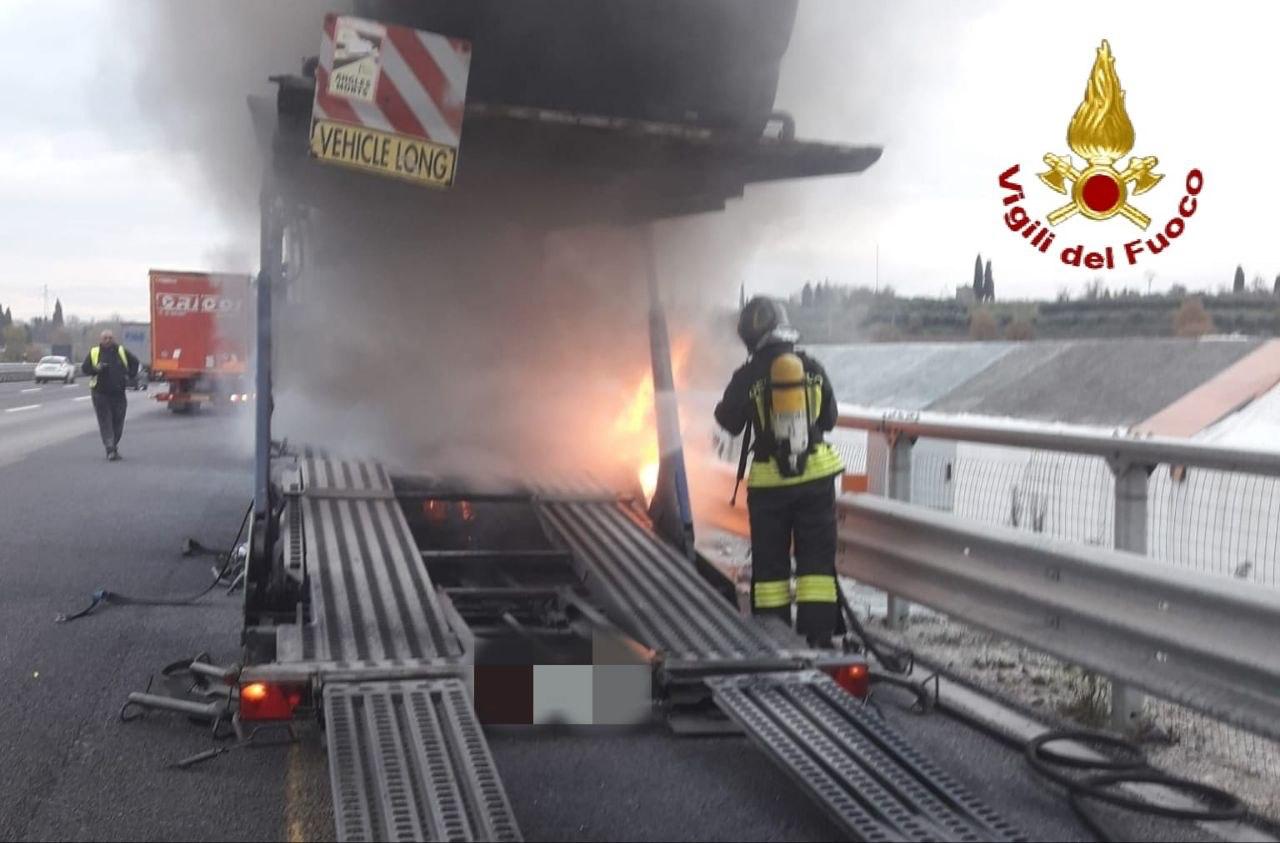 Nella mattinata di venerdì 5 dicembre 2025, un camion bisarca ha preso fuoco in A4, poco distante dal casello di Peschiera del Garda.