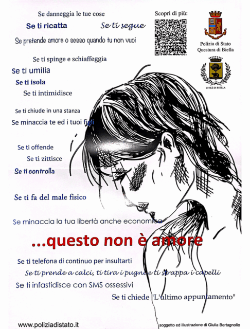 La Questura di Biella, il Comune e i commercianti di Biella uniscono le forze in una nuova iniziativa di sensibilizzazione contro la violenza di genere, presentata in occasione della Giornata internazionale per l’eliminazione della violenza sulle donne. Un progetto che punta tutto sulla forza dell’impatto visivo e sulla presenza capillare nel territorio, attraverso 300 locandine e numerosi poster distribuiti nei negozi, nei centri commerciali, nei locali e nei principali punti di aggregazione della città.