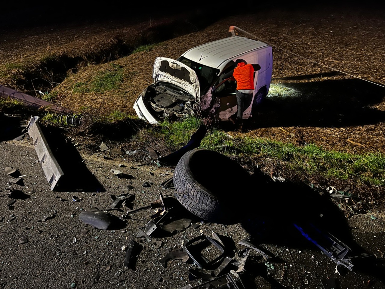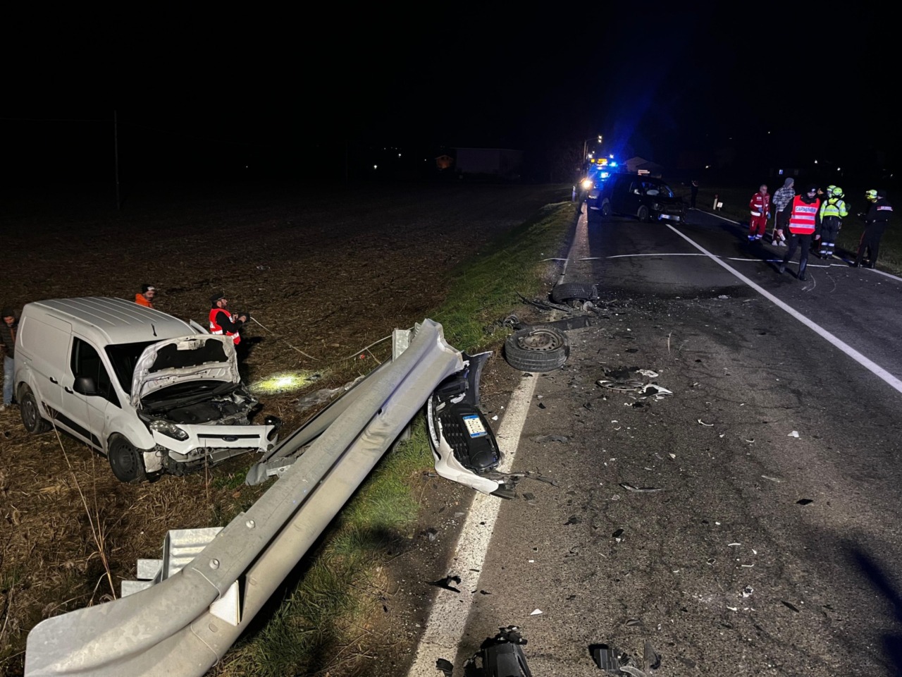 Secondo le prime ricostruzioni, il furgone Volkswagen di colore scuro, diretto verso Cavagnolo, avrebbe improvvisamente perso il controllo, andando a scontrarsi con il furgone Ford bianco, che procedeva in direzione Chivasso. L’impatto è stato violento e ha causato l’uscita di strada del mezzo bianco, finito nella scarpata laterale.