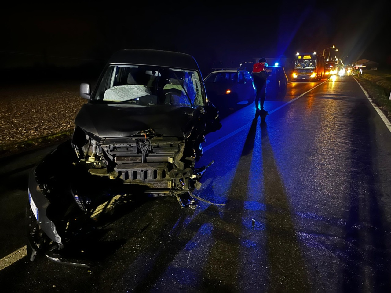 Poco dopo le 18 di oggi, lunedì 24 novembre 2025, lungo la strada provinciale 590 a Cavagnolo, si è verificato un incidente che ha coinvolto due furgoni, uno Volkswagen nero e un Ford bianco.