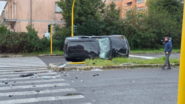 Un violento scontro tra un’auto della polizia locale di Latina e un suv Kia si è verificato all’incrocio fra viale Kennedy e via Vespucci, alle porte del centro di Latina. È qui che la pattuglia del comando di piazzale dei Mercanti, mentre era con sirena e lampeggianti accesi con due agenti a bordo che inseguivano uno scooter in fuga, appena passato con il semaforo rosso, si è scontrata con il suv, guidato invece da un giovane, che si è ribaltato su un fianco.