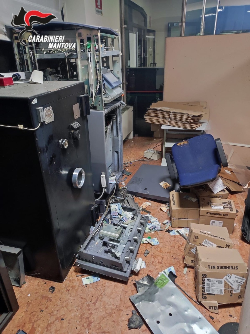 Nella mattina di sabato 6 dicembre 2025, il Nucleo Operativo e Radiomobile della Compagnia Carabinieri di Castiglione delle Stiviere, insieme al personale della stazione locale, è intervenuto nel comune di Guidizzolo dopo l’esplosione del bancomat della Banca Popolare di Verona.
